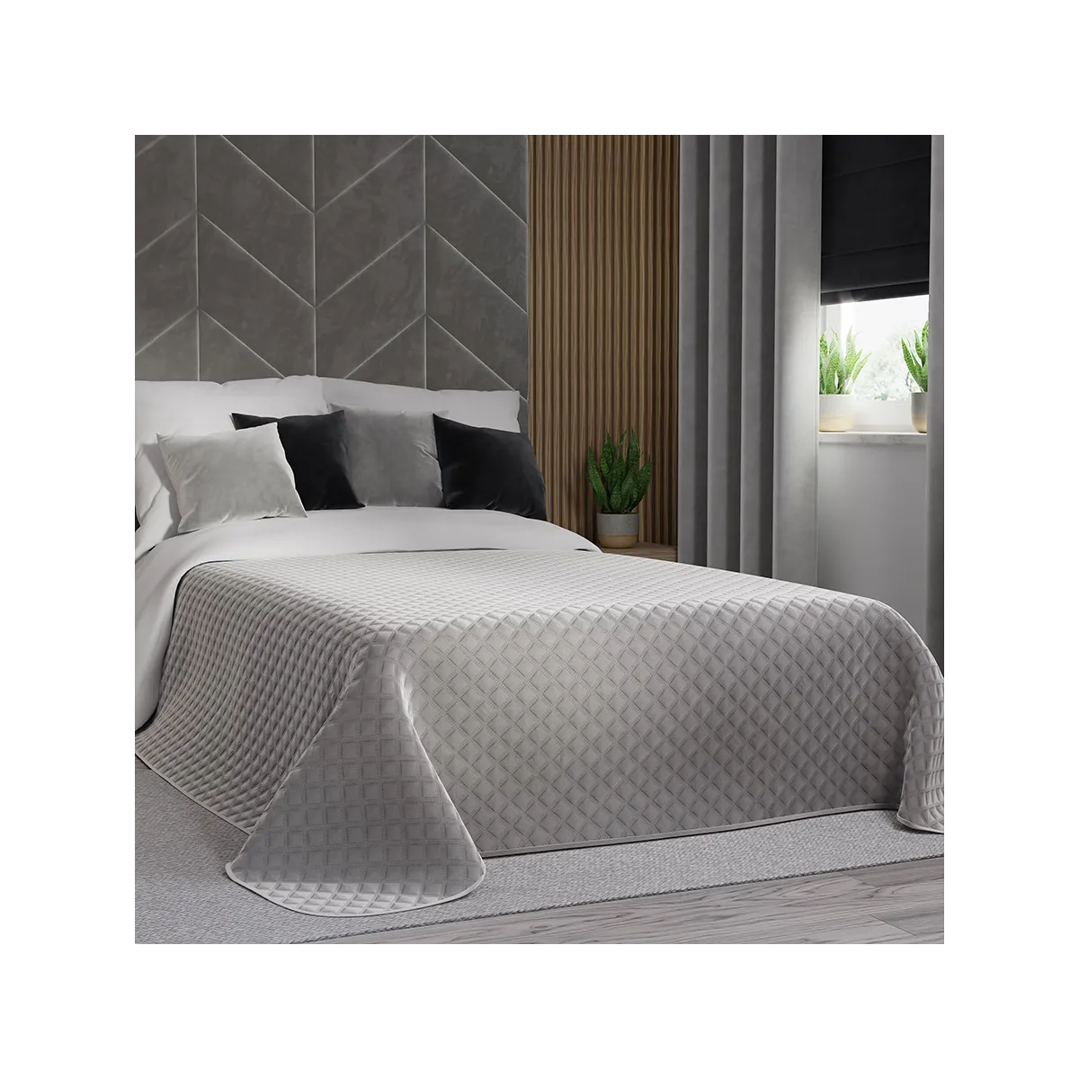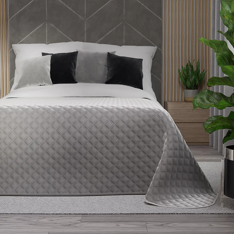 Pragniesz sypialni, która będzie nie tylko komfortowa, ale i stylowa? Narzuta dekoracyjna VELVI to doskonały wybór! Wykonana z miękkiego, przyjemnego w dotyku materiału, zapewni Ci ciepło i komfortowy wypoczynek. Jej klasyczny, szary kolor z delikatnym, geometrycznym wzorem wprowadzi do wnętrza nutę nowoczesnej elegancji. Subtelne pikowanie dodaje trójwymiarowego efektu, a staranne wykończenie świadczy o wysokiej jakości produktu. Narzuta VELVI to nie tylko praktyczny dodatek, ale również piękna ozdoba, która odmieni wygląd Twojej sypialni.