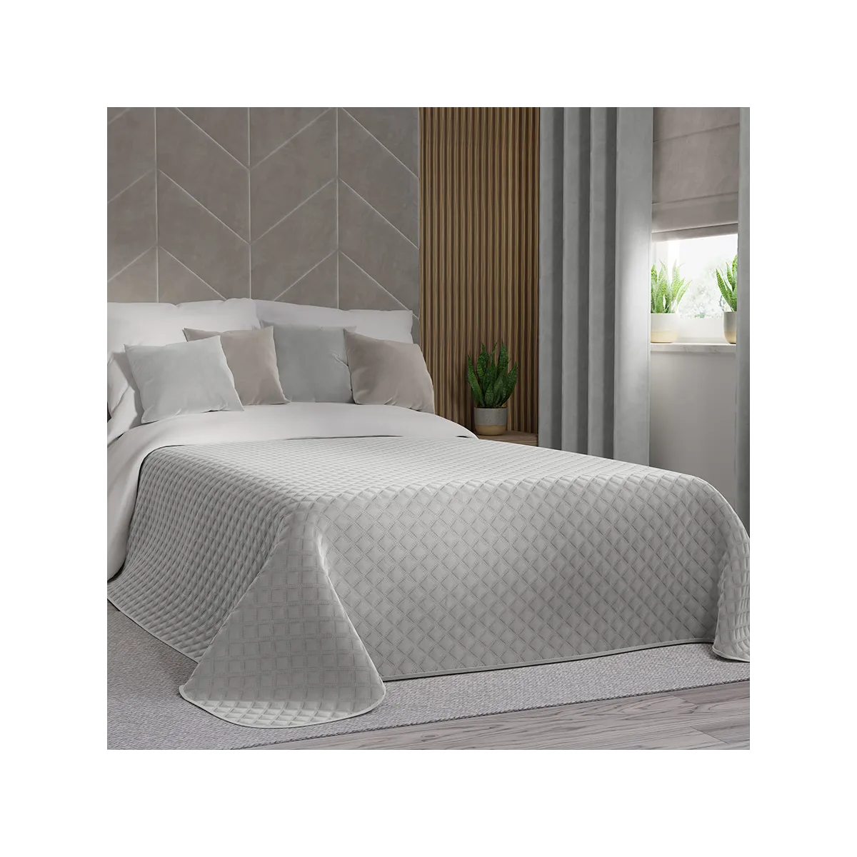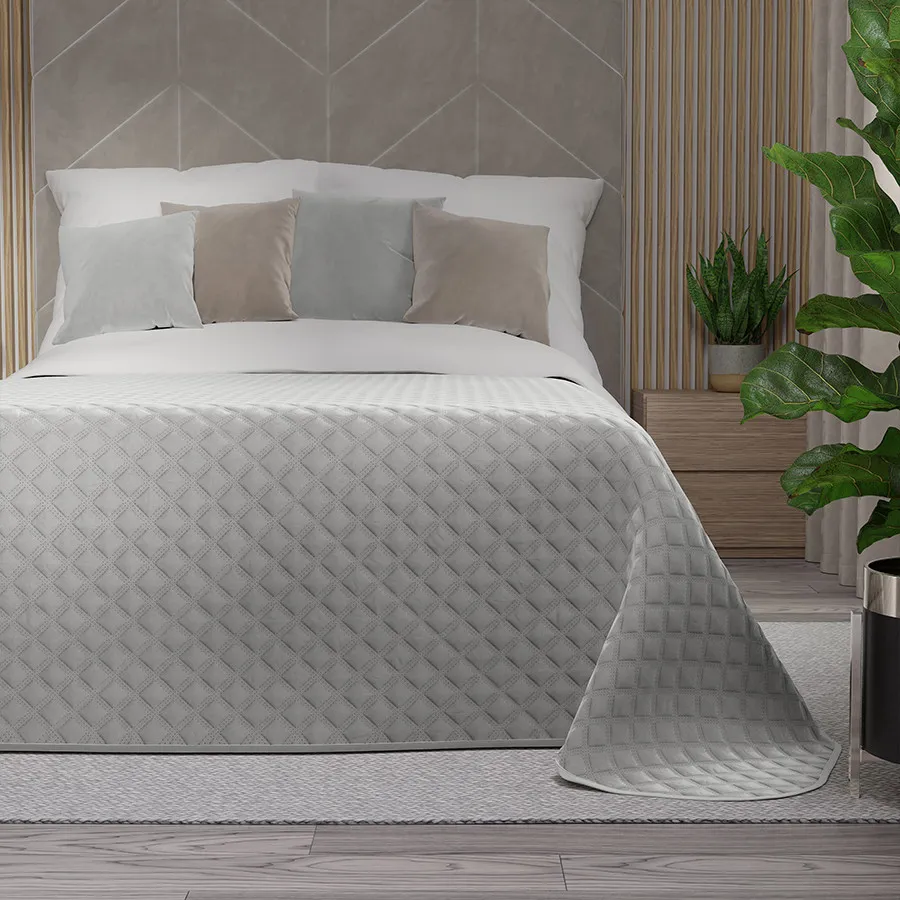 Marzysz o sypialni, która będzie oazą spokoju i elegancji? Narzuta dekoracyjna VELVI to idealny wybór dla Ciebie! Wykonana z miękkiego, przyjemnego w dotyku materiału, otuli Cię swoim ciepłem i zapewni komfortowy wypoczynek. Jej pastelowy, szary kolor z subtelnym, geometrycznym wzorem doda wnętrzu nowoczesnego charakteru i stylu. Delikatne pikowanie nadaje jej trójwymiarowego efektu, a staranne wykończenie świadczy o dbałości o każdy detal. Narzuta VELVI to nie tylko praktyczny dodatek, ale również piękna dekoracja, która odmieni wygląd Twojej sypialni.