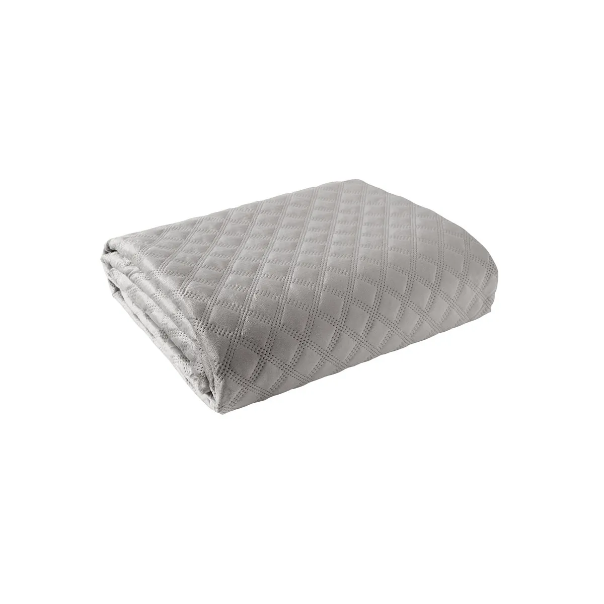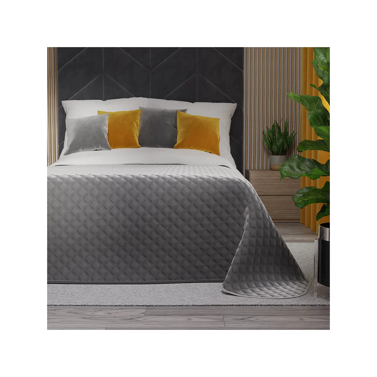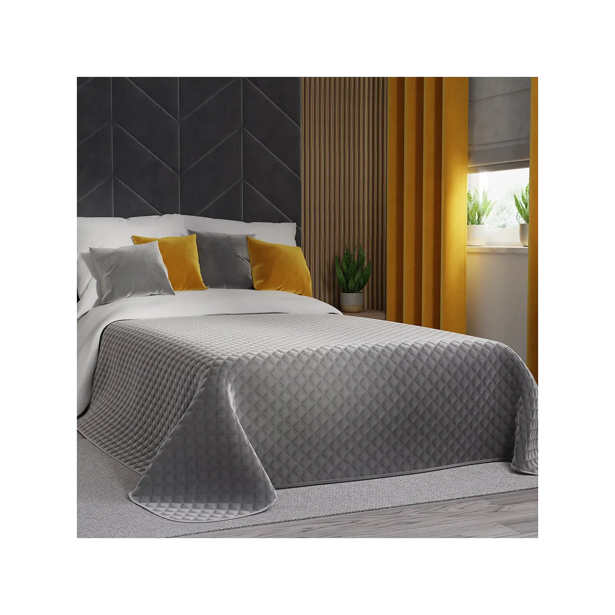 Odkryj subtelną elegancję narzuty VELVI w modnym, chłodnym odcieniu szarości. Geometryczny wzór dodaje wnętrzu nowoczesnego charakteru. Idealna na mniejsze łóżka, o wymiarach 170x210cm, zapewnia komfort i stylowy akcent w każdej sypialni.
