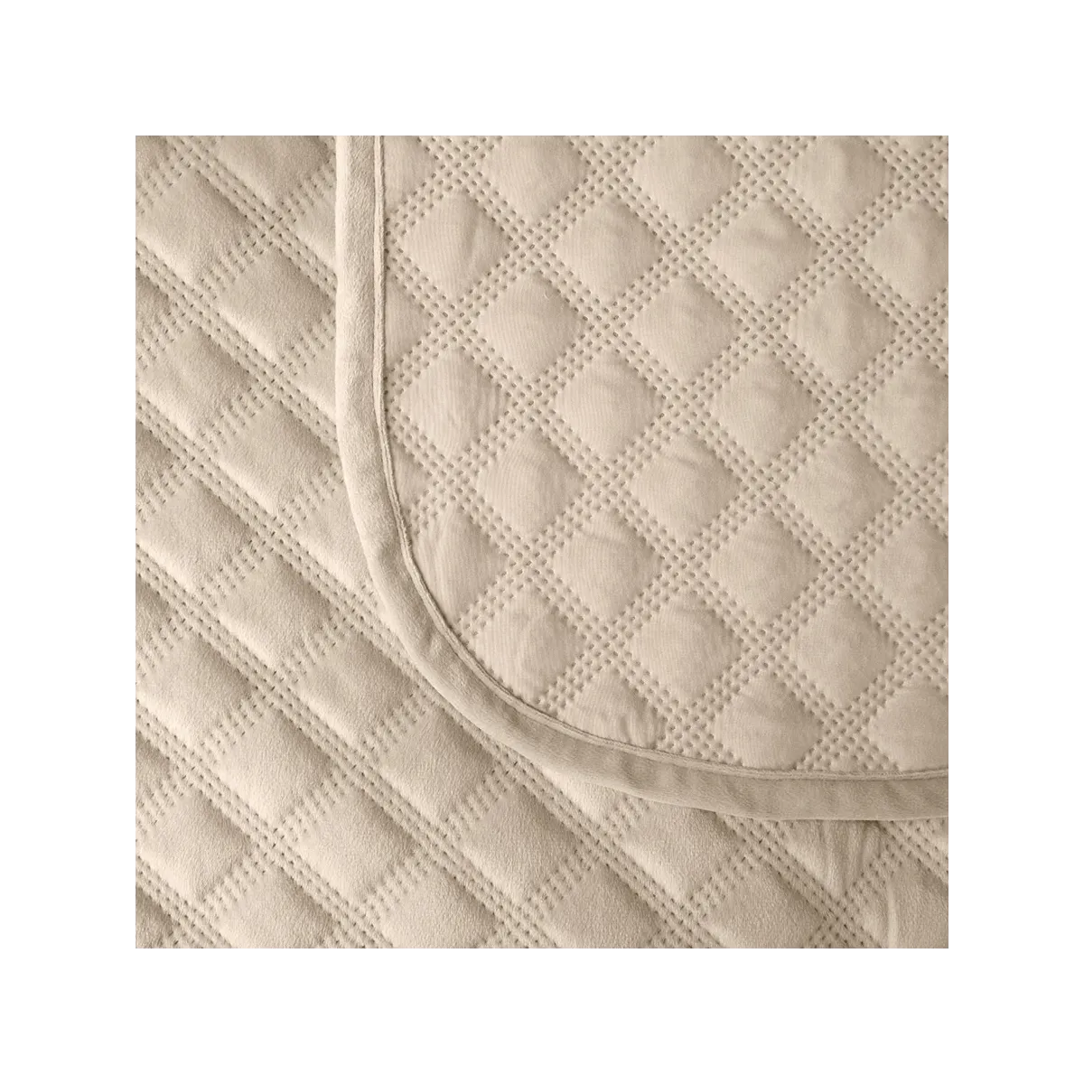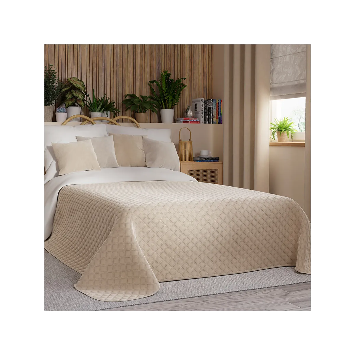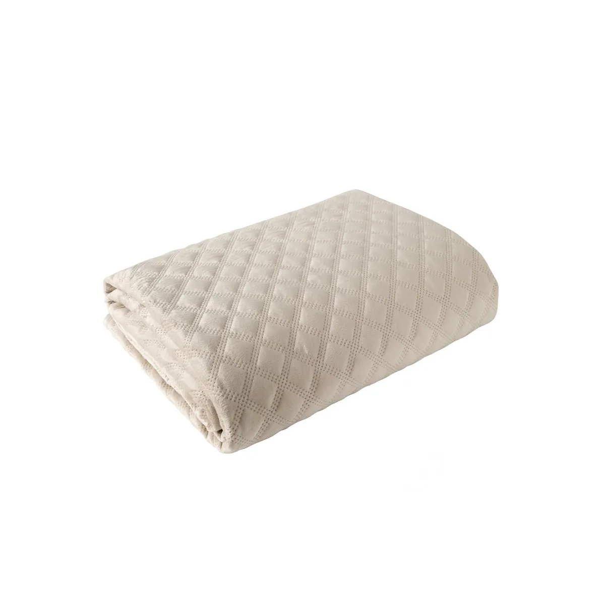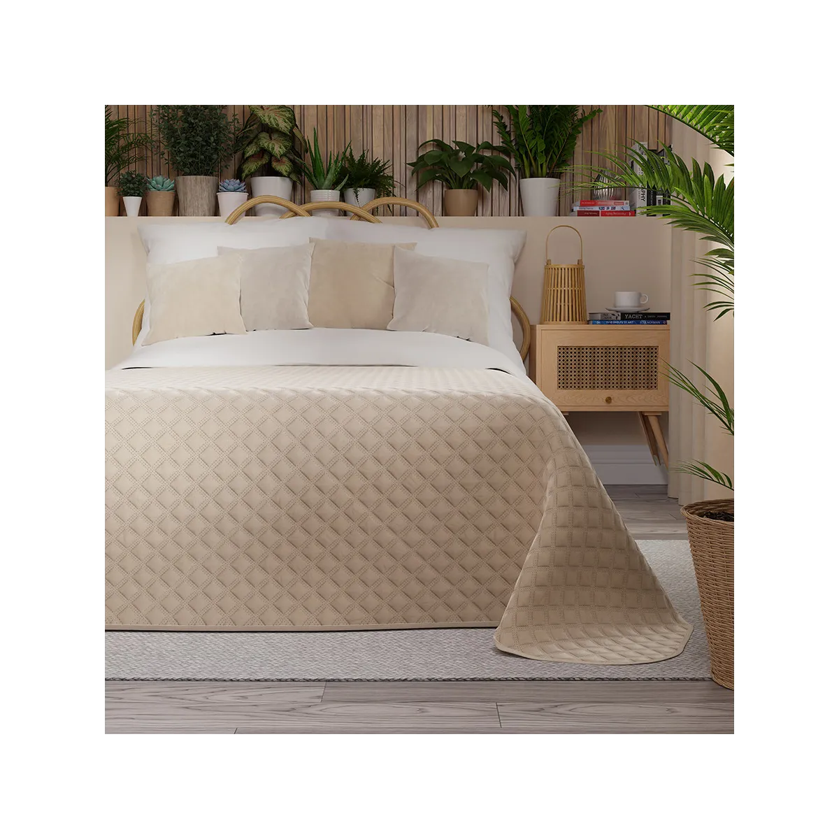 Narzuta VELVI w delikatnym, jasnym beżowym odcieniu to synonim elegancji i subtelności. Jej subtelny, geometryczny wzór wprowadza do wnętrza harmonię i spokój, tworząc idealne miejsce do relaksu. Miękka, przyjemna w dotyku faktura narzuty sprawia, że każda chwila spędzona w sypialni staje się wyjątkowa. Dzięki starannemu wykonaniu i wysokiej jakości materiałom, narzuta VELVI zachowuje swój nienaganny wygląd przez długi czas. Ten unikalny, jasny beżowy odcień doskonale komponuje się z różnorodnymi stylami wnętrzarskimi, od nowoczesnego minimalizmu po klasyczną elegancję.