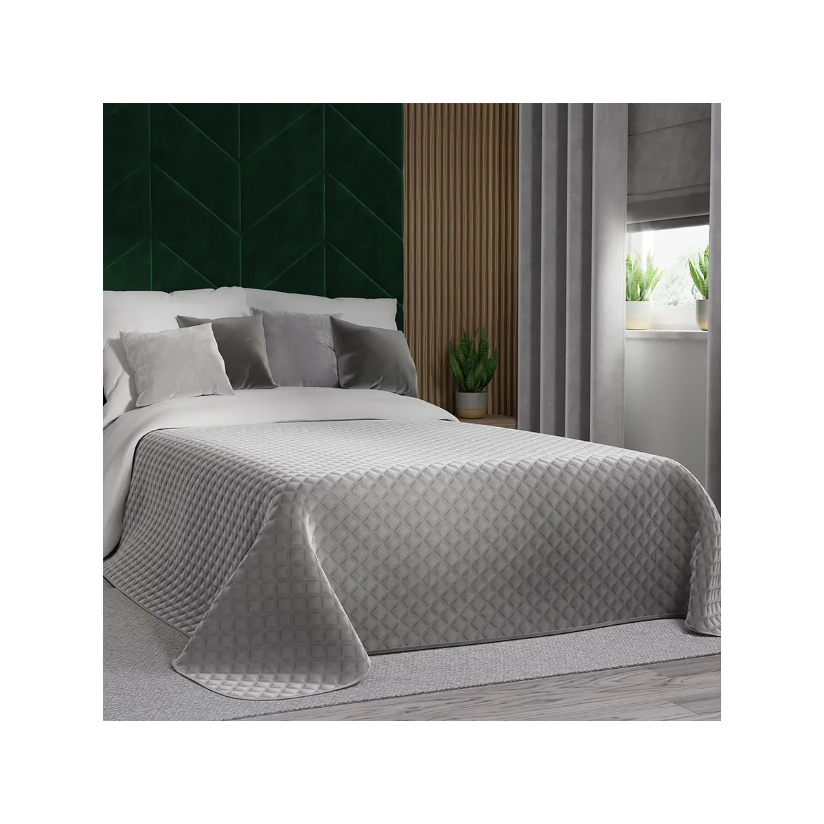 Narzuta VELVI w delikatnym, jasnym szarym odcieniu to synonim elegancji i subtelności. Jej subtelny, geometryczny wzór wprowadza do wnętrza harmonię i spokój, tworząc idealne miejsce do relaksu. Miękka, przyjemna w dotyku faktura narzuty sprawia, że każda chwila spędzona w sypialni staje się wyjątkowa. Dzięki starannemu wykonaniu i wysokiej jakości materiałom, narzuta VELVI zachowuje swój nienaganny wygląd przez długi czas. Ten unikalny, jasny szary odcień doskonale komponuje się z różnorodnymi stylami wnętrzarskimi, od nowoczesnego minimalizmu po klasyczną elegancję.