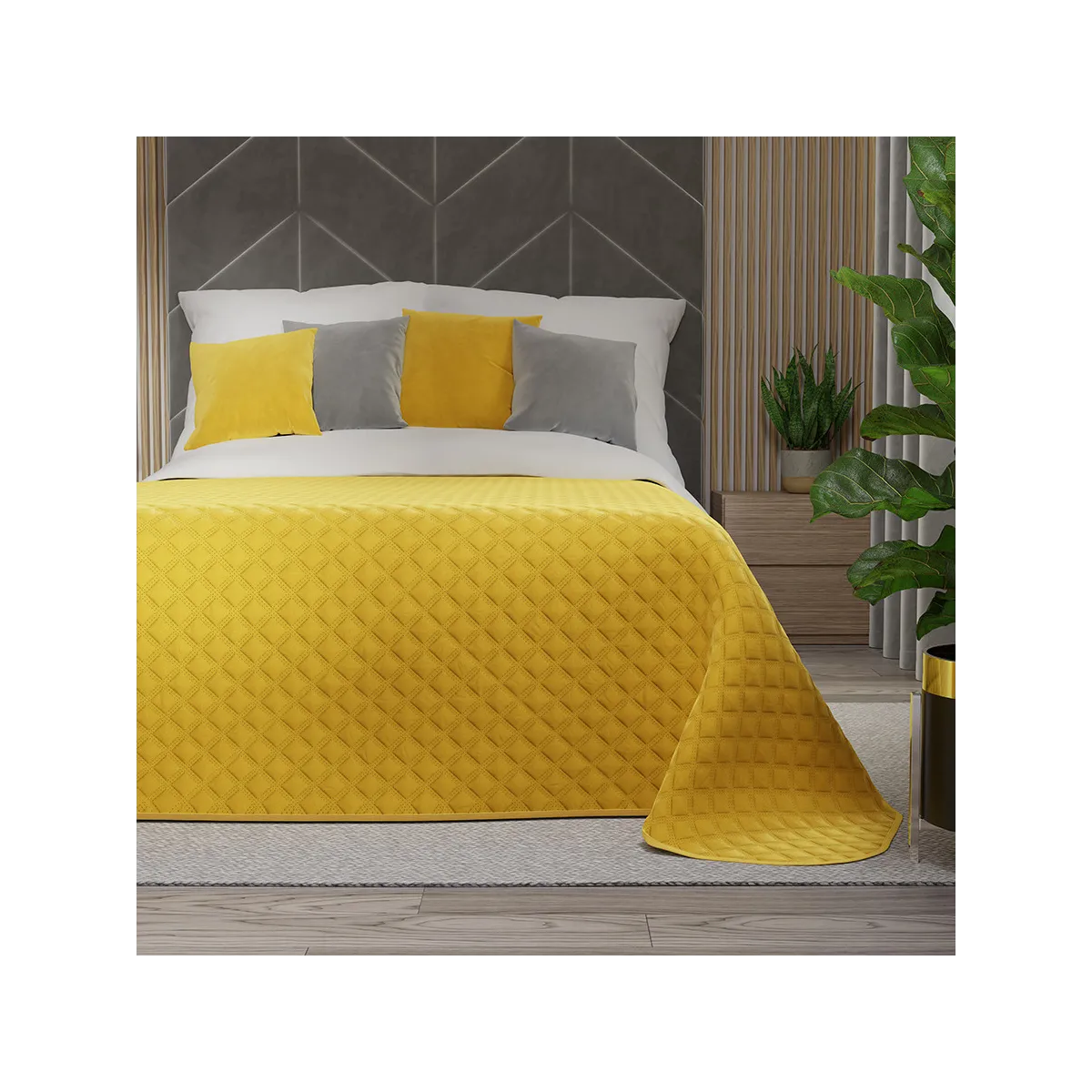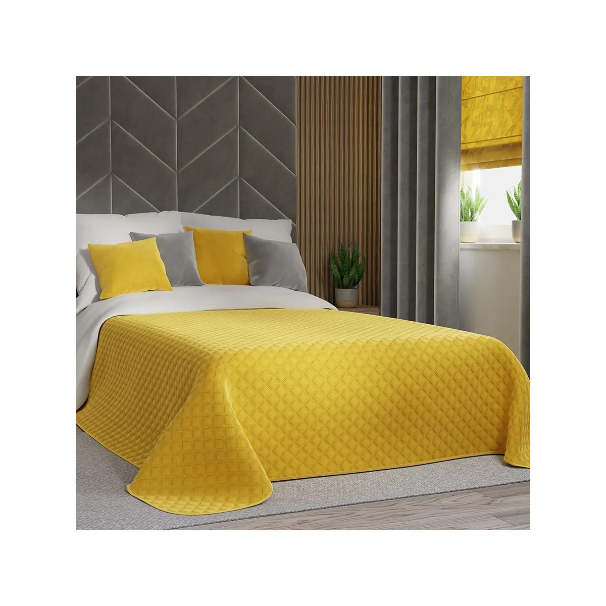 Odkryj intensywność koloru narzuty VELVI w radosnym, słonecznym żółtym odcieniu. Geometryczny wzór dodaje wnętrzu energii i nowoczesnego stylu. Idealna na większe łóżka, o wymiarach 220x240cm, zapewnia komfort i wyrazisty akcent w każdej sypialni.