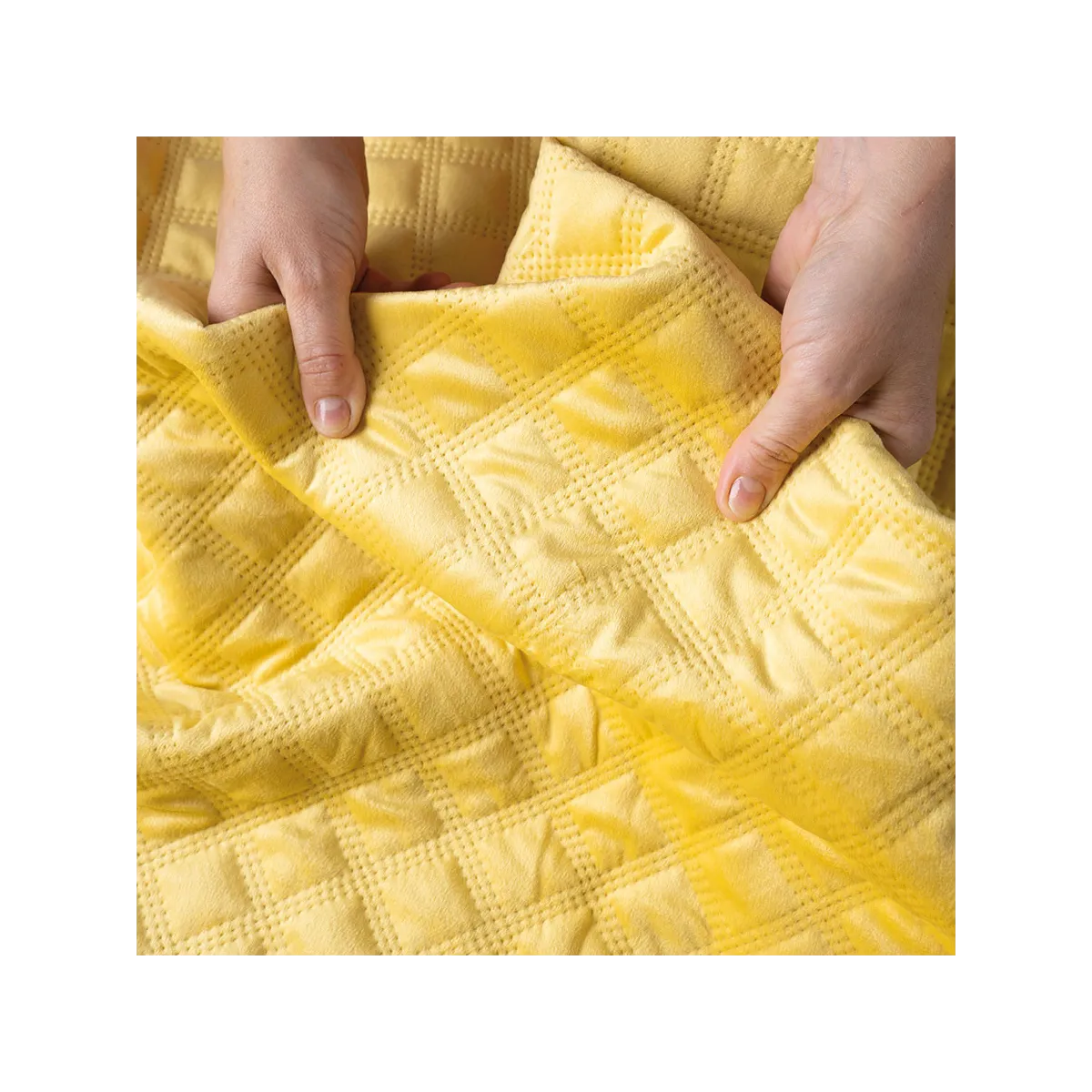 Narzuta VELVI w intensywnym, słonecznym żółtym odcieniu to synonim energii i pozytywnych wibracji. Jej subtelny, geometryczny wzór wprowadza do wnętrza harmonię i spokój, tworząc idealne miejsce do relaksu. Miękka, przyjemna w dotyku faktura narzuty sprawia, że każda chwila spędzona w sypialni staje się wyjątkowa. Dzięki starannemu wykonaniu i wysokiej jakości materiałom, narzuta VELVI zachowuje swój nienaganny wygląd przez długi czas. Ten unikalny, słoneczny odcień żółci doskonale komponuje się z różnorodnymi stylami wnętrzarskimi, od nowoczesnego minimalizmu po klasyczną elegancję.