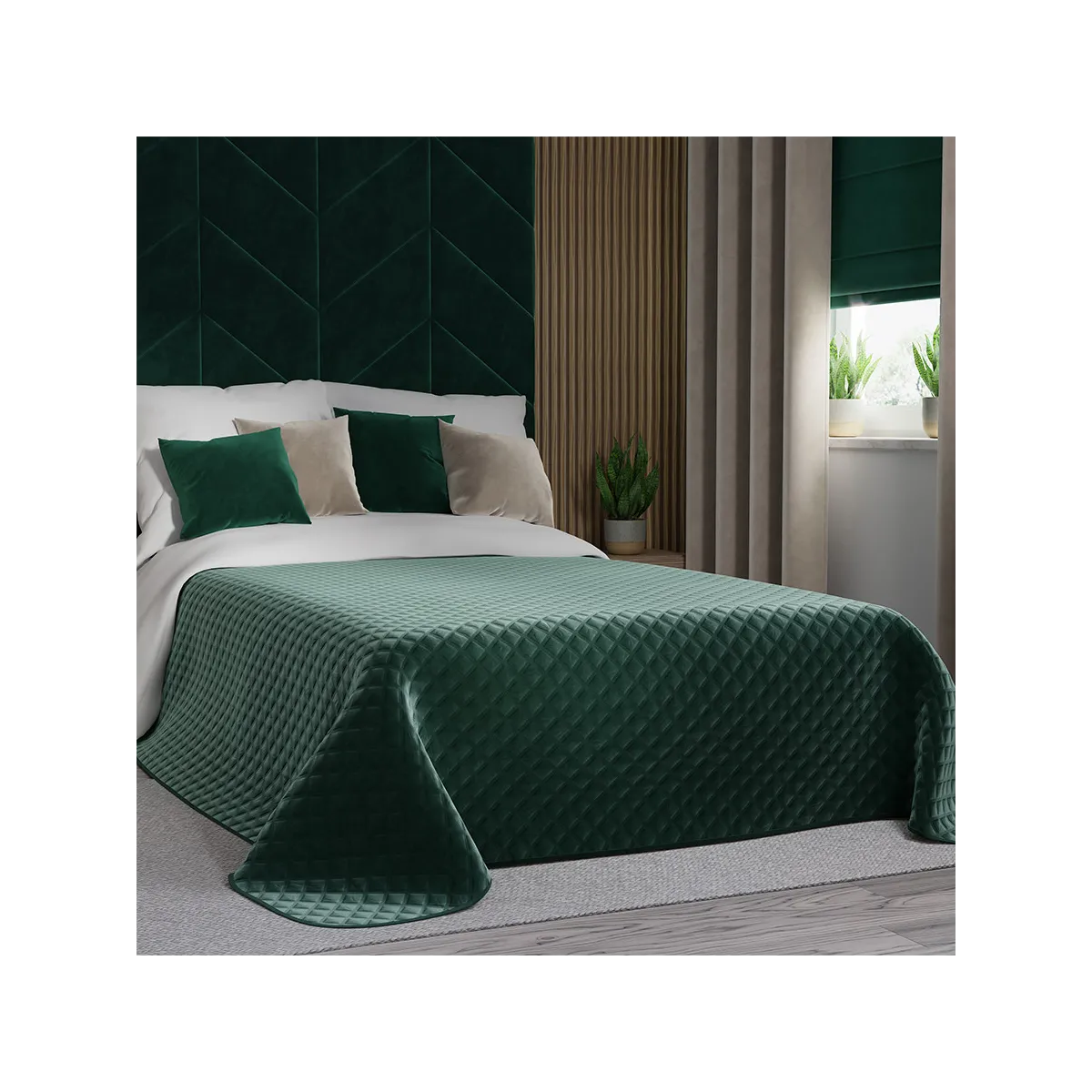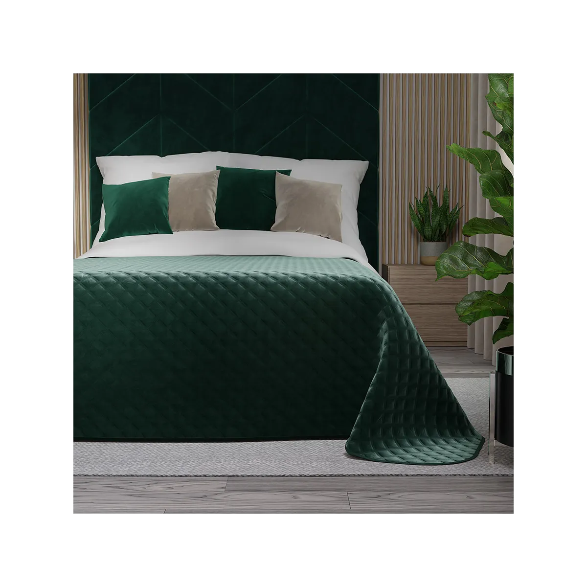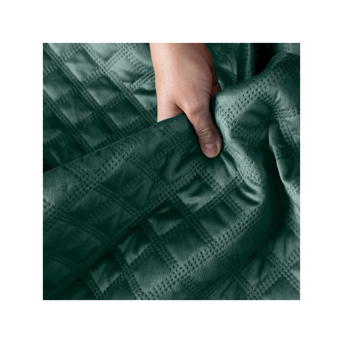 Odkryj głębię koloru i elegancję narzuty VELVI w odcieniu szmaragdowej zieleni. Geometryczny wzór dodaje wnętrzu charakteru i nowoczesnego stylu. Idealna na większe łóżka, o wymiarach 220x240cm, zapewnia komfort i wyrafinowany wygląd każdej sypialni.