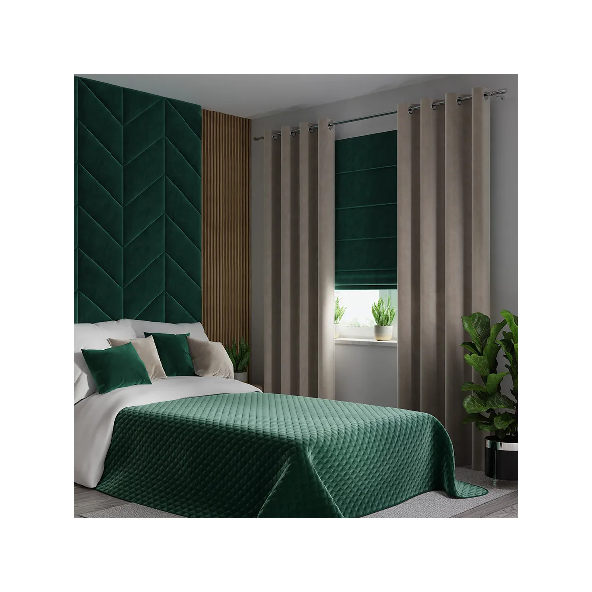 Narzuta VELVI w głębokim, szmaragdowym odcieniu zieleni to synonim elegancji i wyrafinowanego smaku. Jej subtelny, geometryczny wzór wprowadza do wnętrza harmonię i spokój, tworząc idealne miejsce do relaksu. Miękka, przyjemna w dotyku faktura narzuty sprawia, że każda chwila spędzona w sypialni staje się wyjątkowa. Dzięki starannemu wykonaniu i wysokiej jakości materiałom, narzuta VELVI zachowuje swój nienaganny wygląd przez długi czas. Ten unikalny, szmaragdowy odcień zieleni doskonale komponuje się z różnorodnymi stylami wnętrzarskimi, od nowoczesnego minimalizmu po klasyczną elegancję.