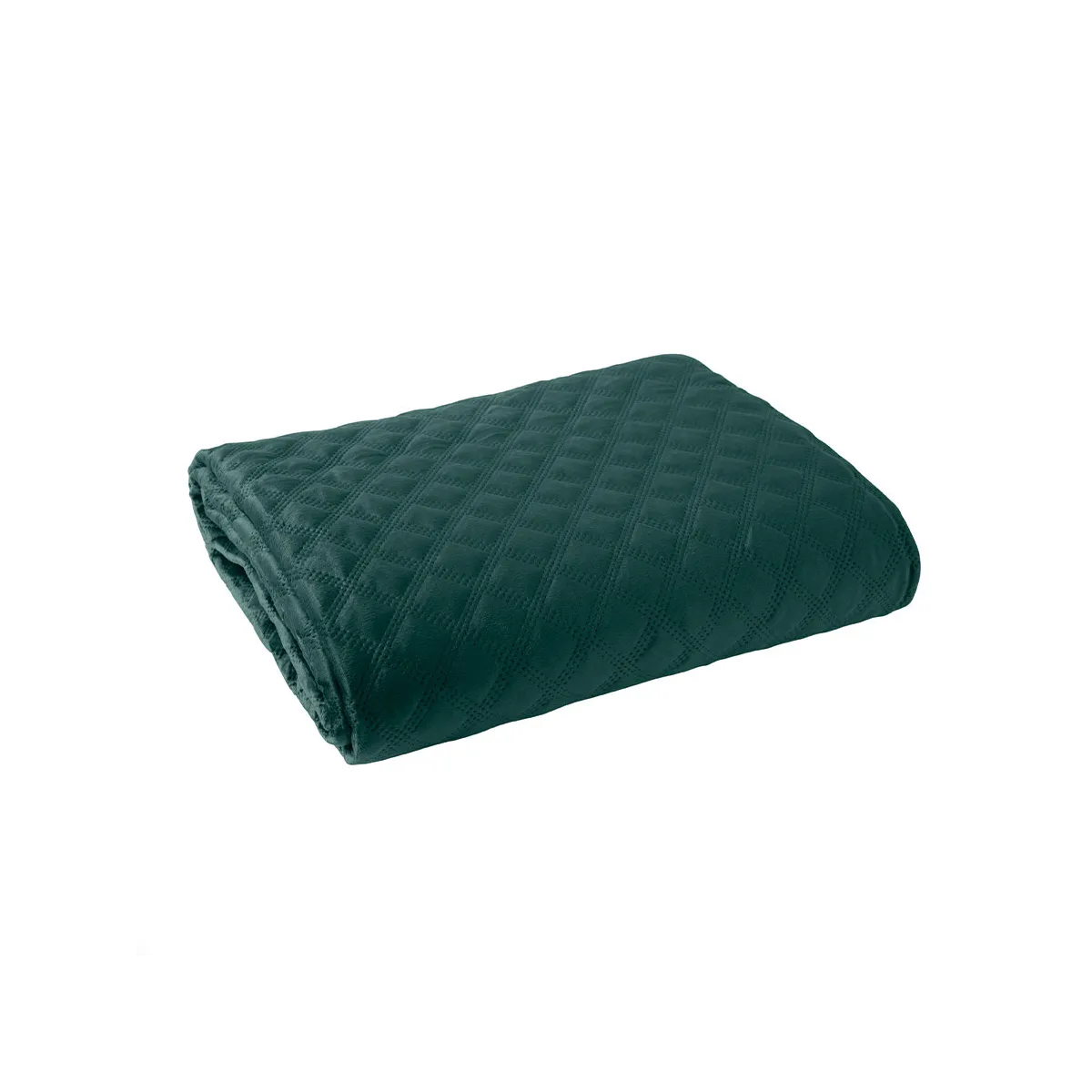 Odkryj głębię koloru narzuty VELVI w eleganckim, ciemnym turkusowym odcieniu petrol. Geometryczny wzór dodaje wnętrzu charakteru i nowoczesnego stylu. Idealna na większe łóżka, o wymiarach 220x240cm, zapewnia komfort i wyrafinowany wygląd każdej sypialni.