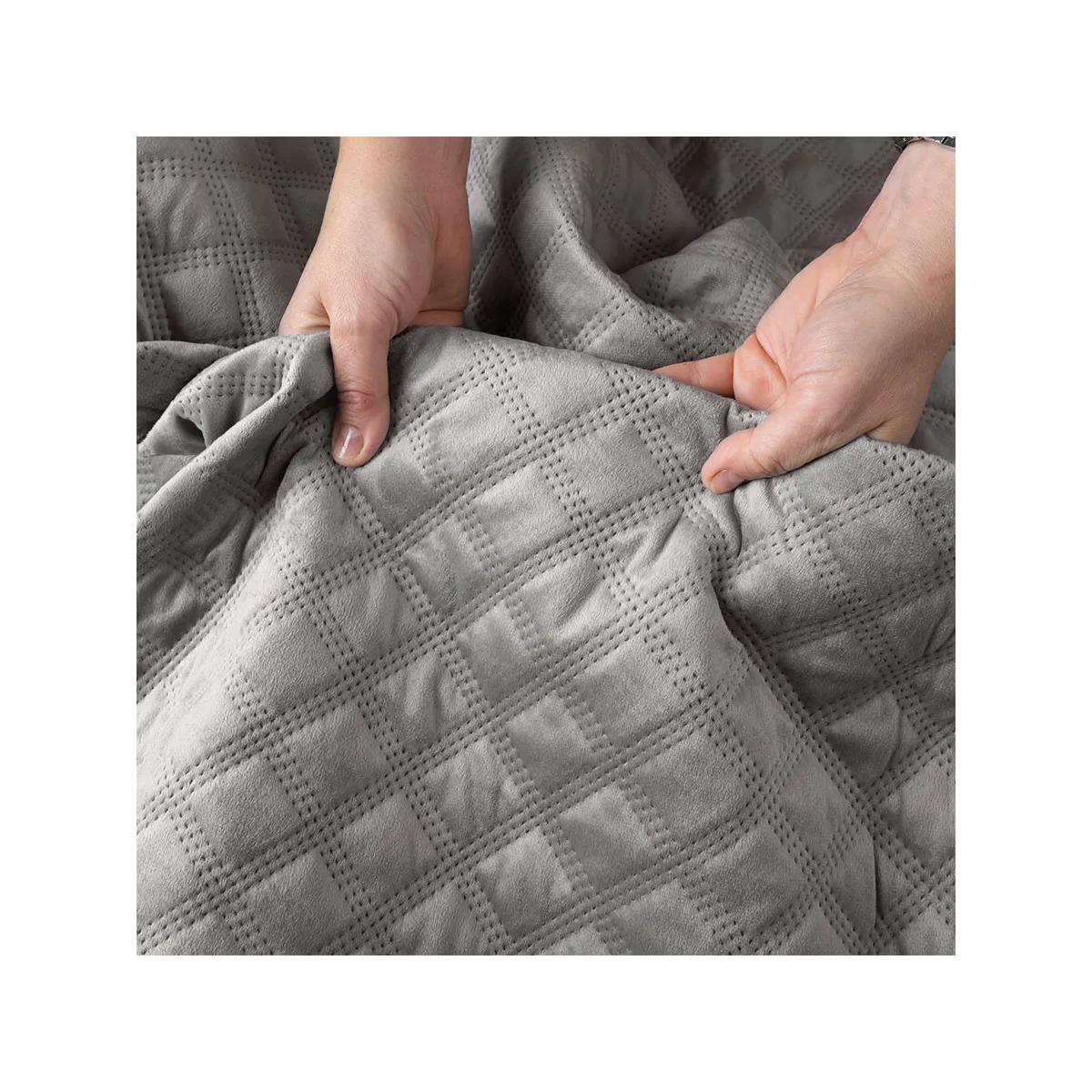 Narzuta dekoracyjna VELVI w odcieniu chłodnego szarości to kwintesencja nowoczesnego designu i subtelnego luksusu. Jej stonowany kolor i geometryczny, pikowany wzór tworzą harmonijną kompozycję, która dodaje wnętrzu spokoju i elegancji. Miękka, przyjemna w dotyku faktura narzuty zapewnia nie tylko estetyczny wygląd, ale także komfort i relaks. Starannie wykonana narzuta VELVI to doskonały wybór dla osób, które cenią sobie minimalistyczne, ale wyrafinowane dodatki do wnętrz.