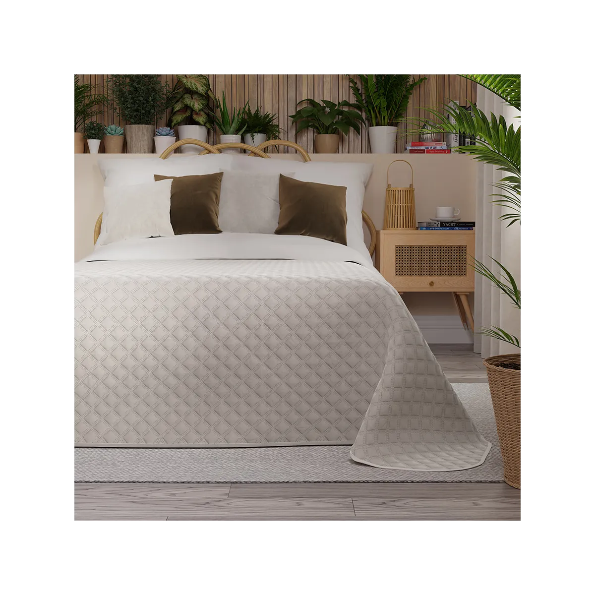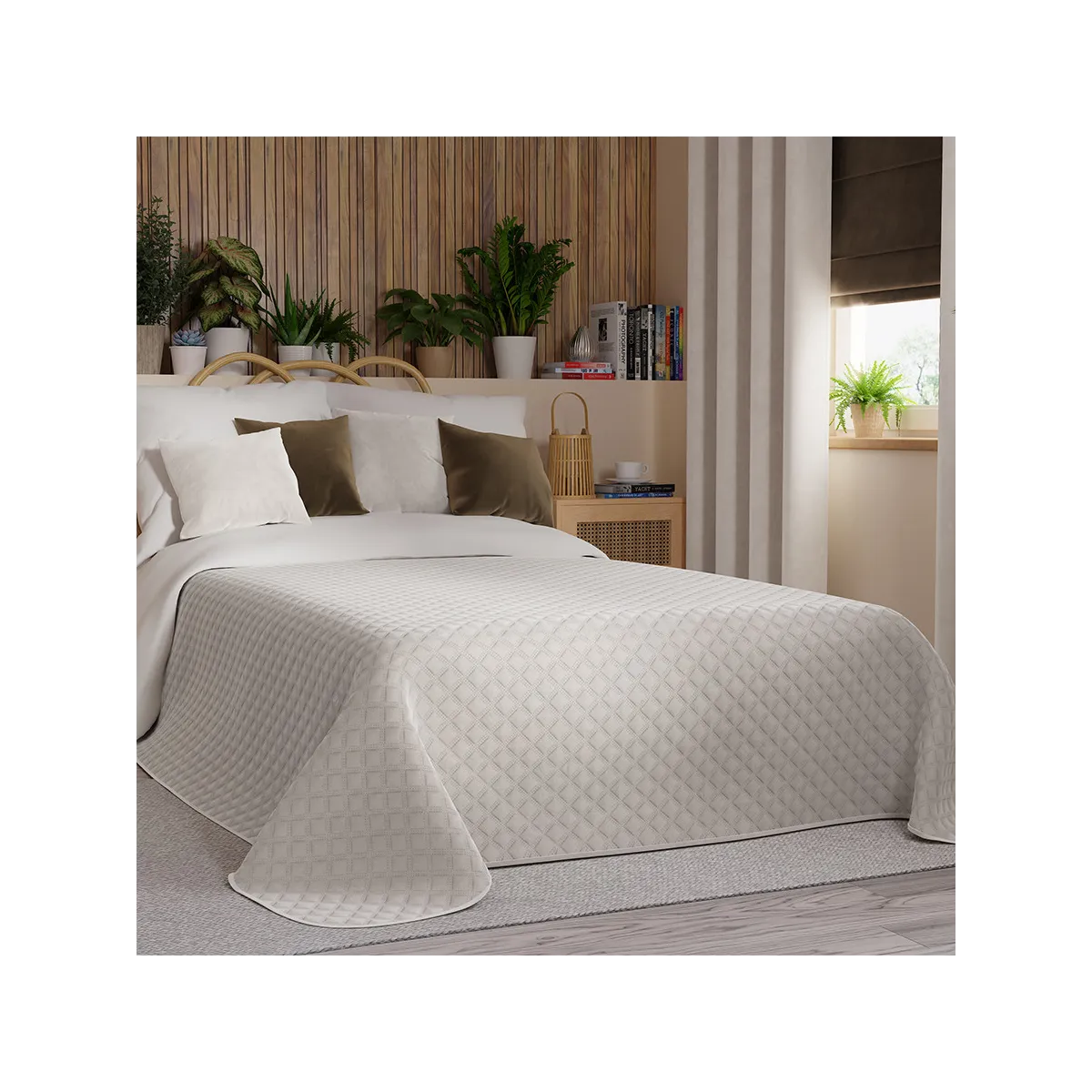 Miękka i przyjemna w dotyku narzuta dekoracyjna VELVI o wymiarach 170x210cm. Utrzymana w ciepłym, jasnym odcieniu szarości z subtelnym, geometrycznym pikowaniem. Doskonały dodatek do sypialni, który wprowadzi do wnętrza spokój, harmonię i elegancję.
