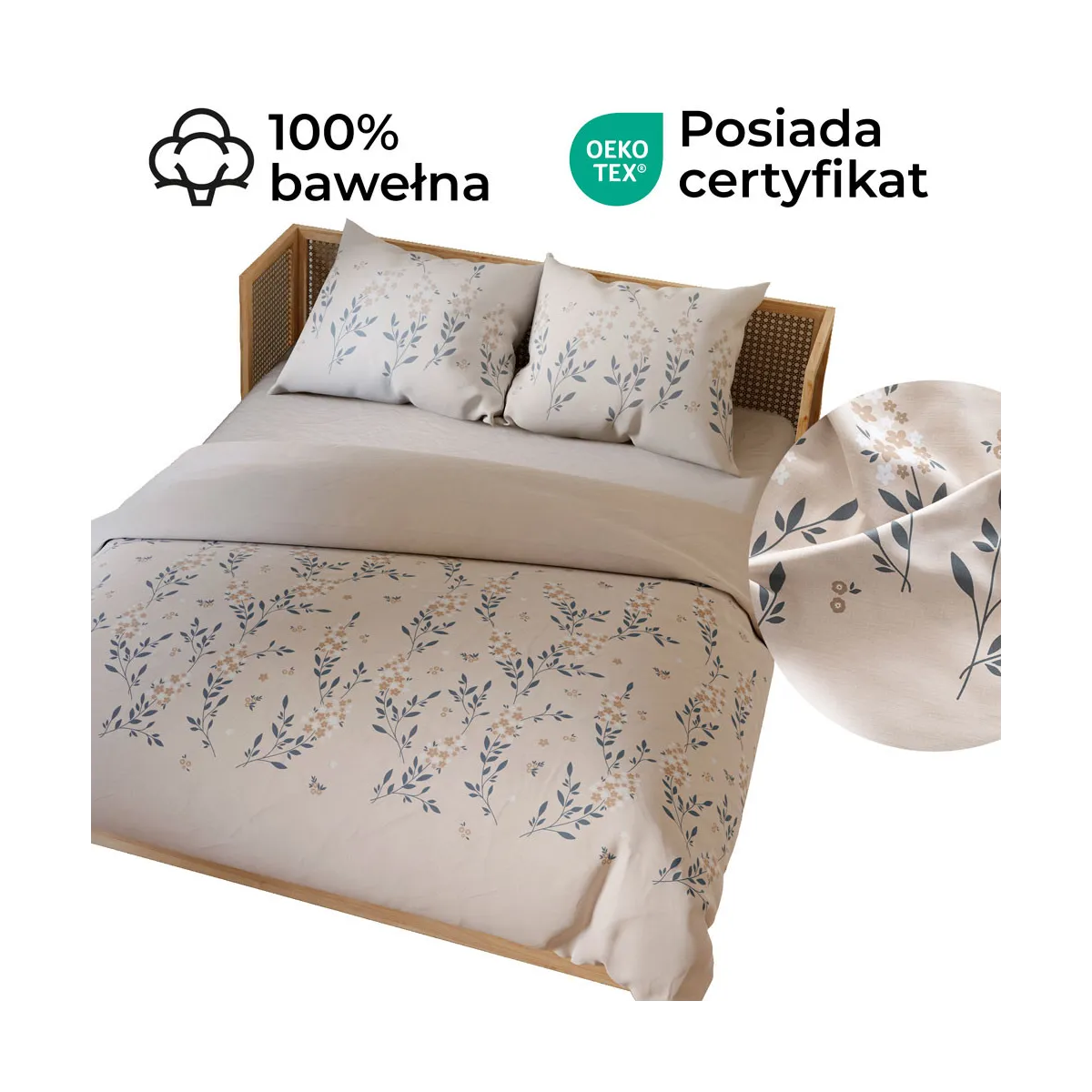 - 🧵 Bawełna satynowa – naturalna, oddychająca, miękka w dotyku i trwała.