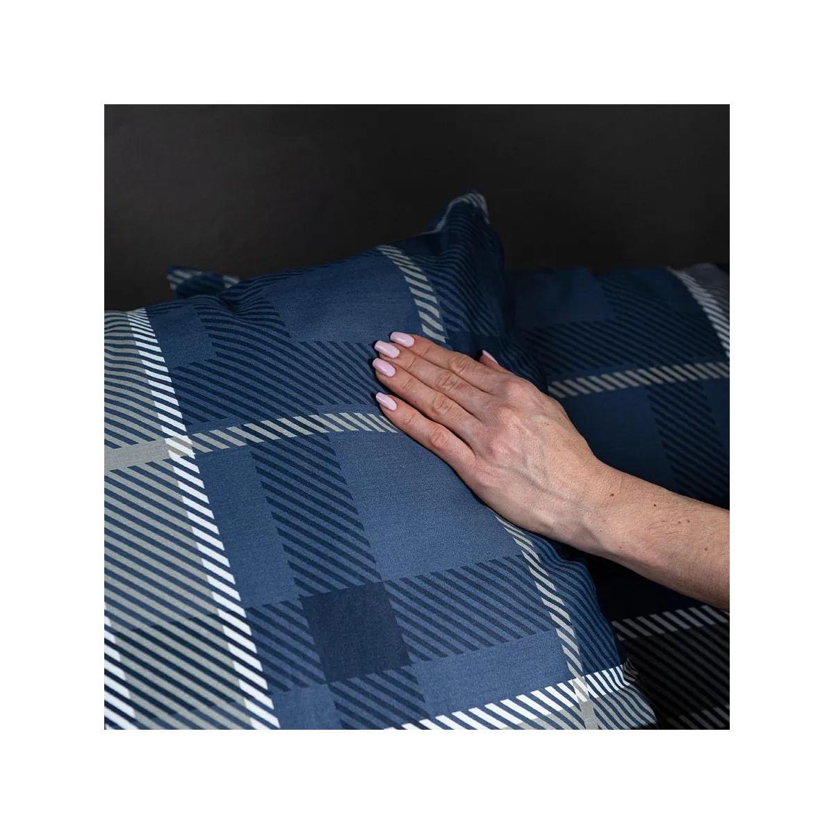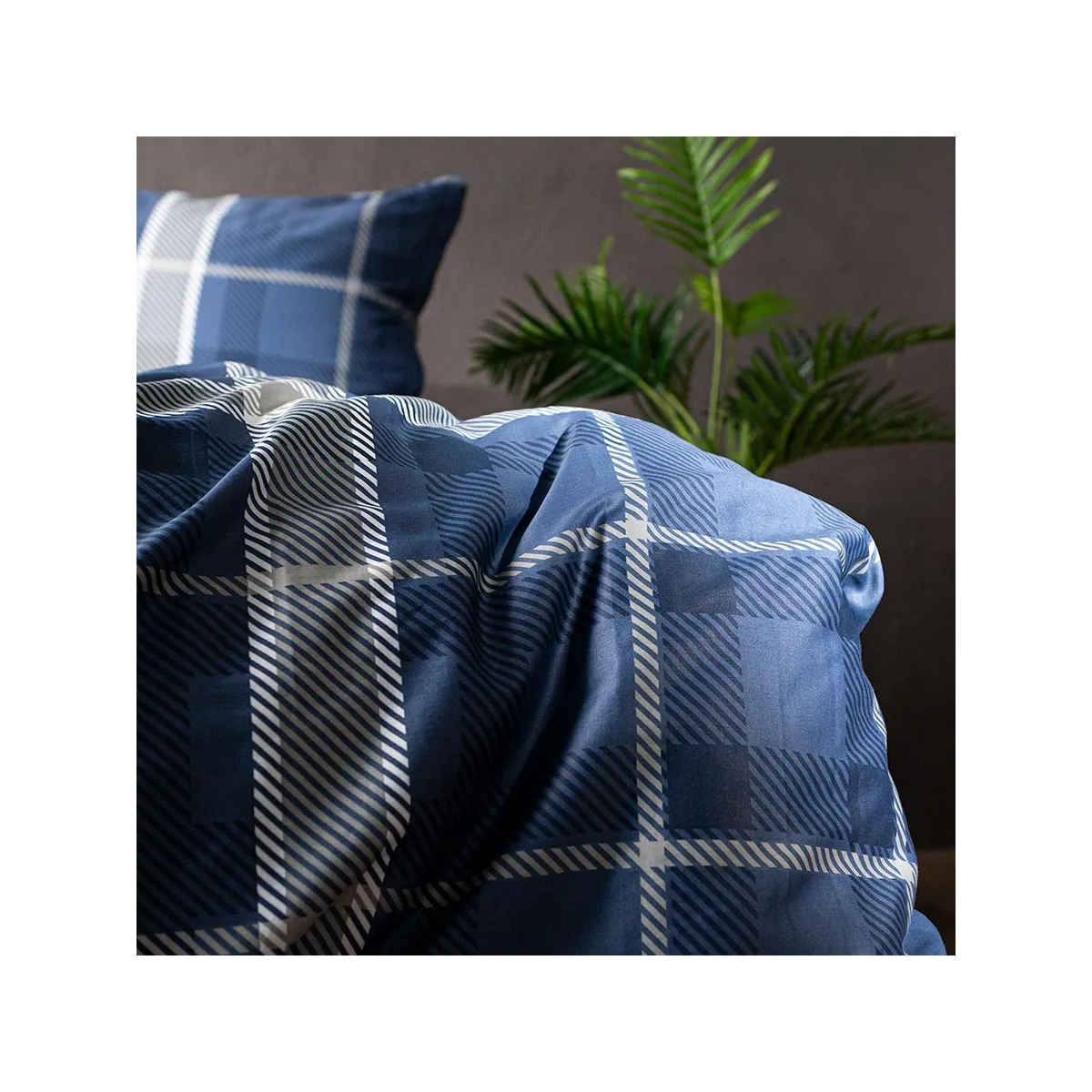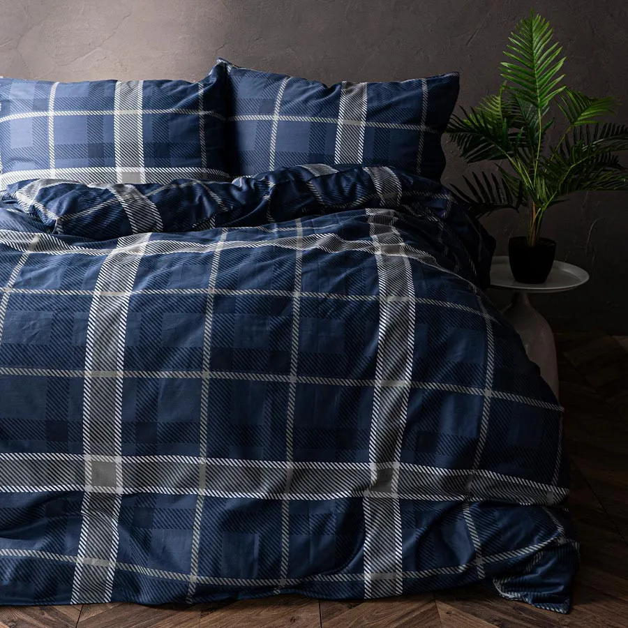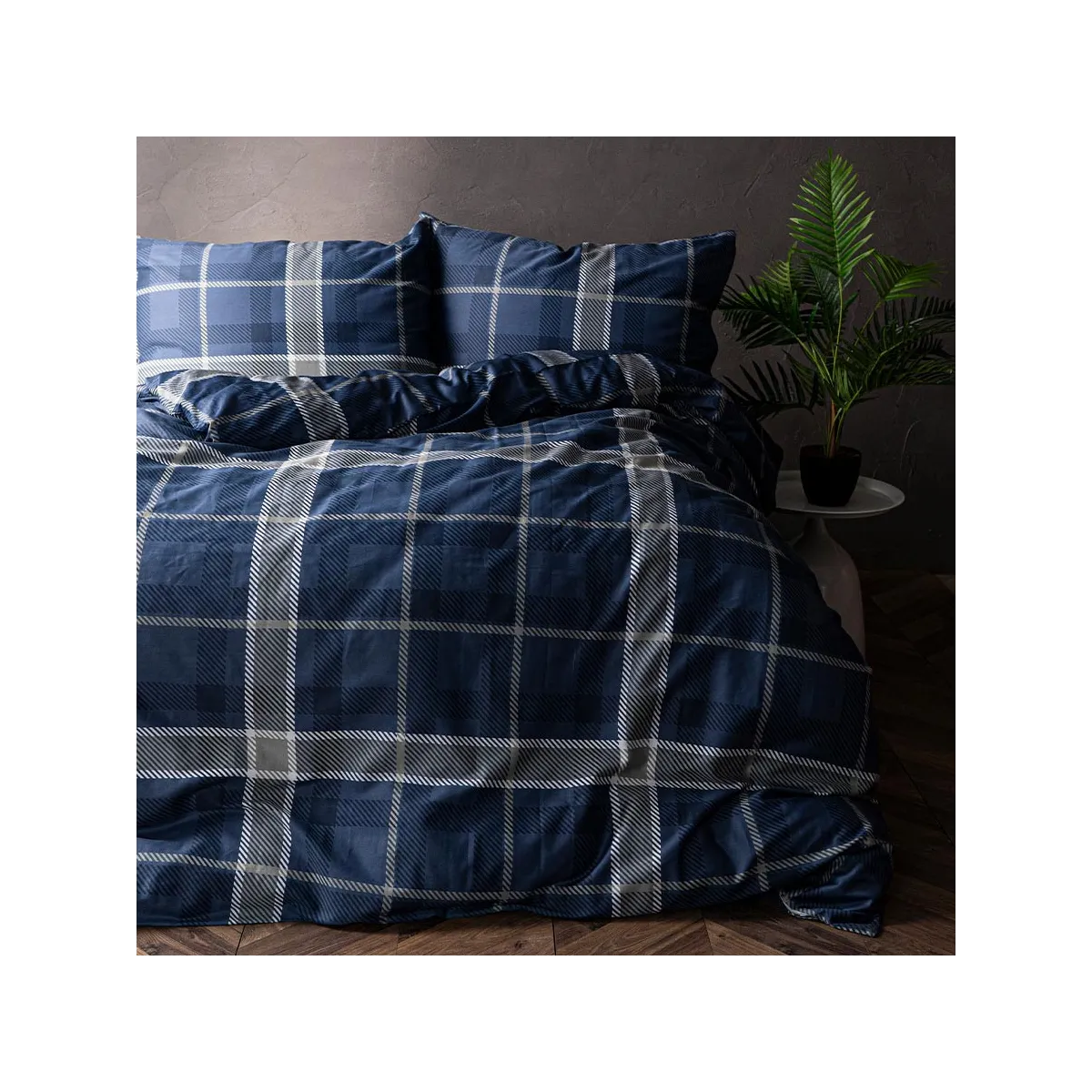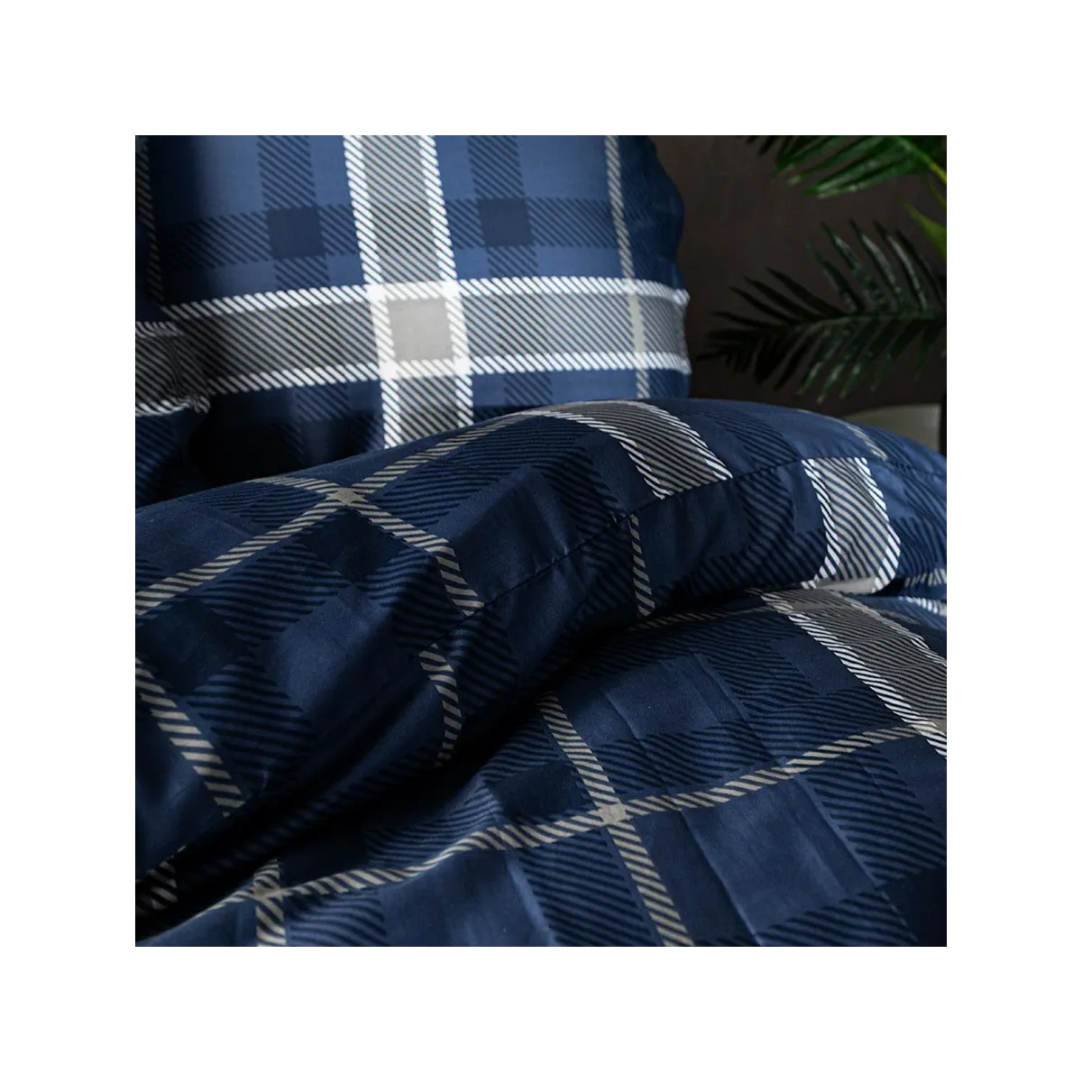 Pościel KADENA łączy w sobie klasykę i nowoczesność. Głęboki granat zestawiony z białym wzorem w kratę tworzy wyrafinowaną, a zarazem przytulną kompozycję. Idealna do sypialni w stylu klasycznym, nowoczesnym czy industrialnym – nadaje im szyku i elegancji.