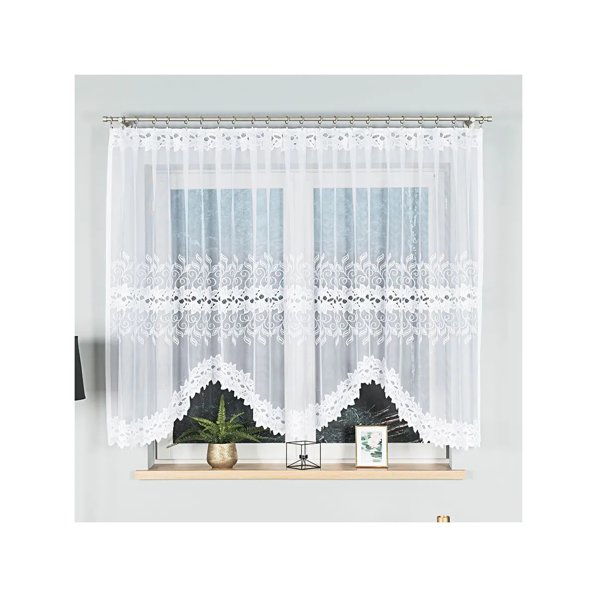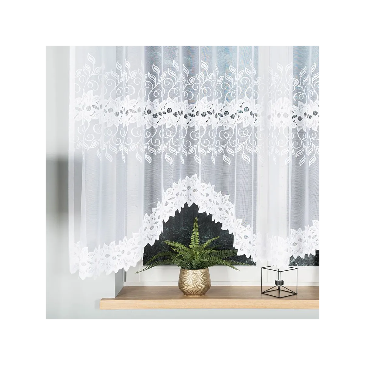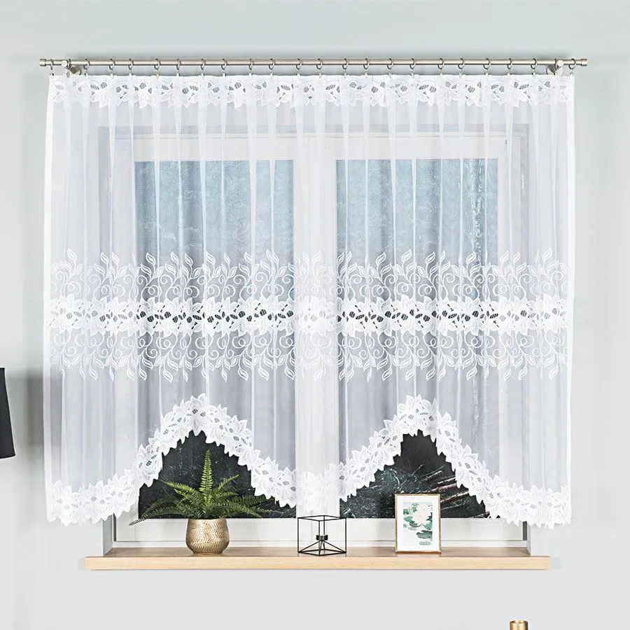 Klasyczna firanka gotowa żakardowa BASTIA marki Markizeta to ponadczasowa propozycja do jasnych, eleganckich wnętrz. Biały kolor i ornamentowy wzór dodają oknu lekkości oraz dekoracyjnego charakteru, a podcięcie na dole tworzy efektowną linię wykończenia.