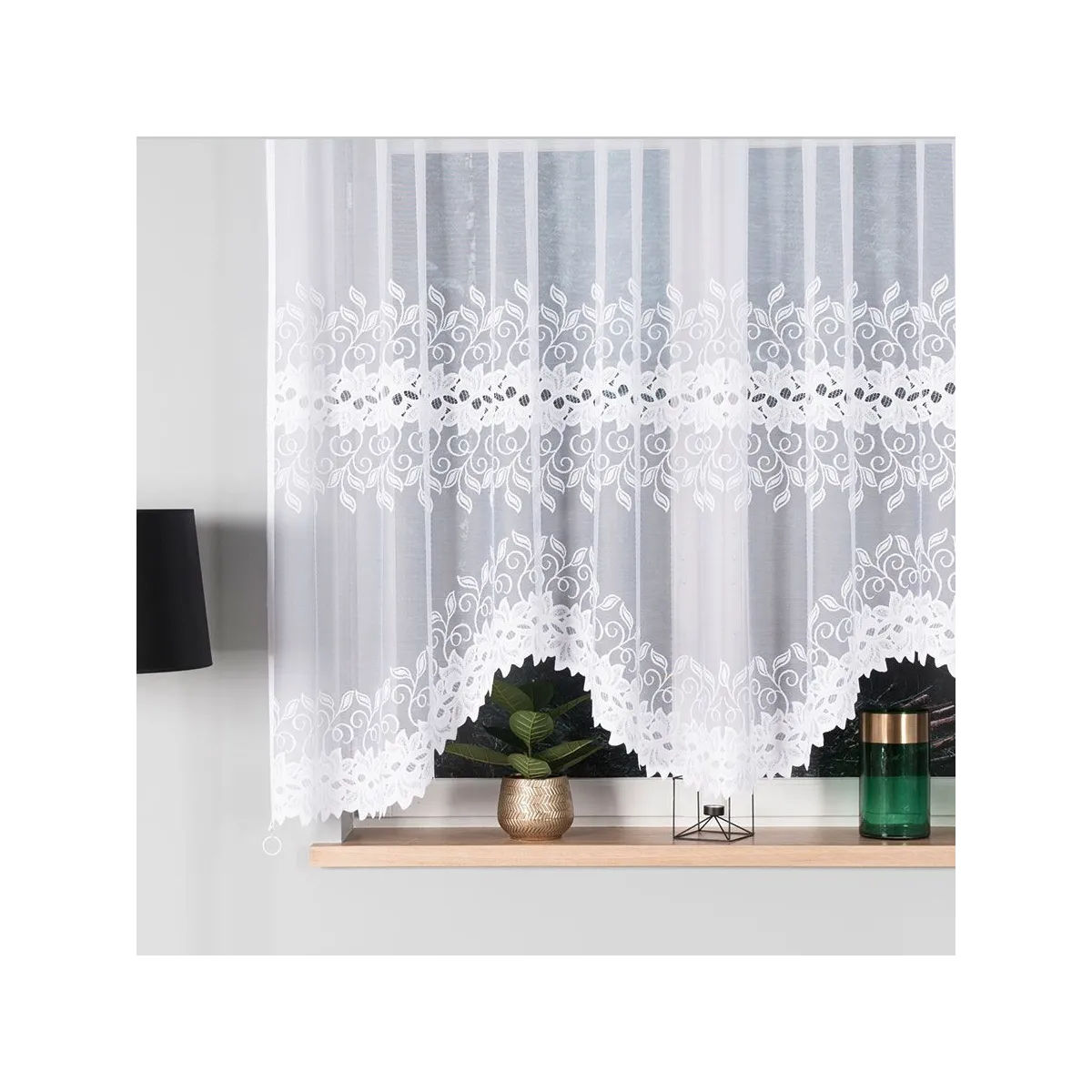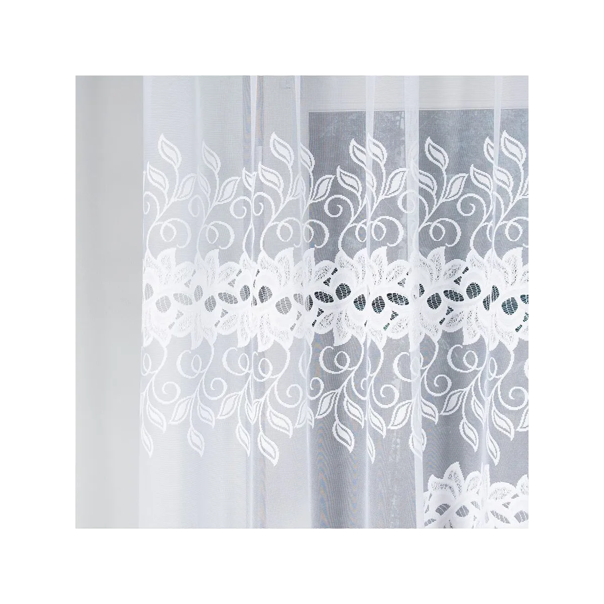 Biała firanka z żakardu świetnie sprawdzi się w salonie, sypialni, jadalni czy domowym gabinecie. Subtelnie rozprasza światło i dodaje wnętrzu przytulności, a ornamentowy wzór stanowi dekoracyjny akcent bez przytłaczania przestrzeni.