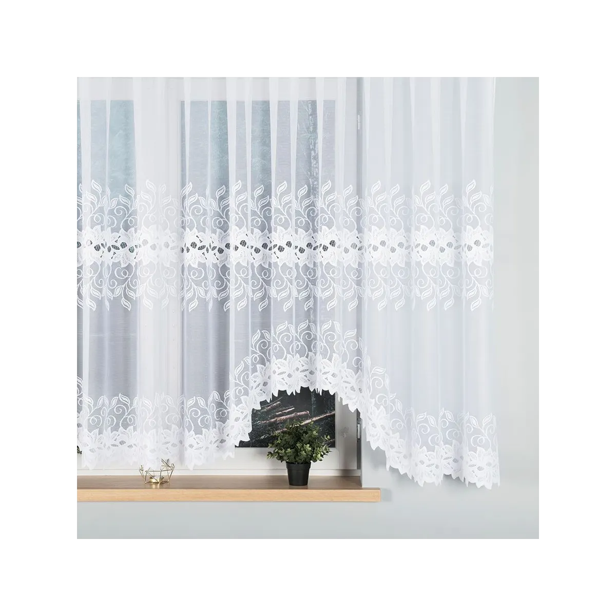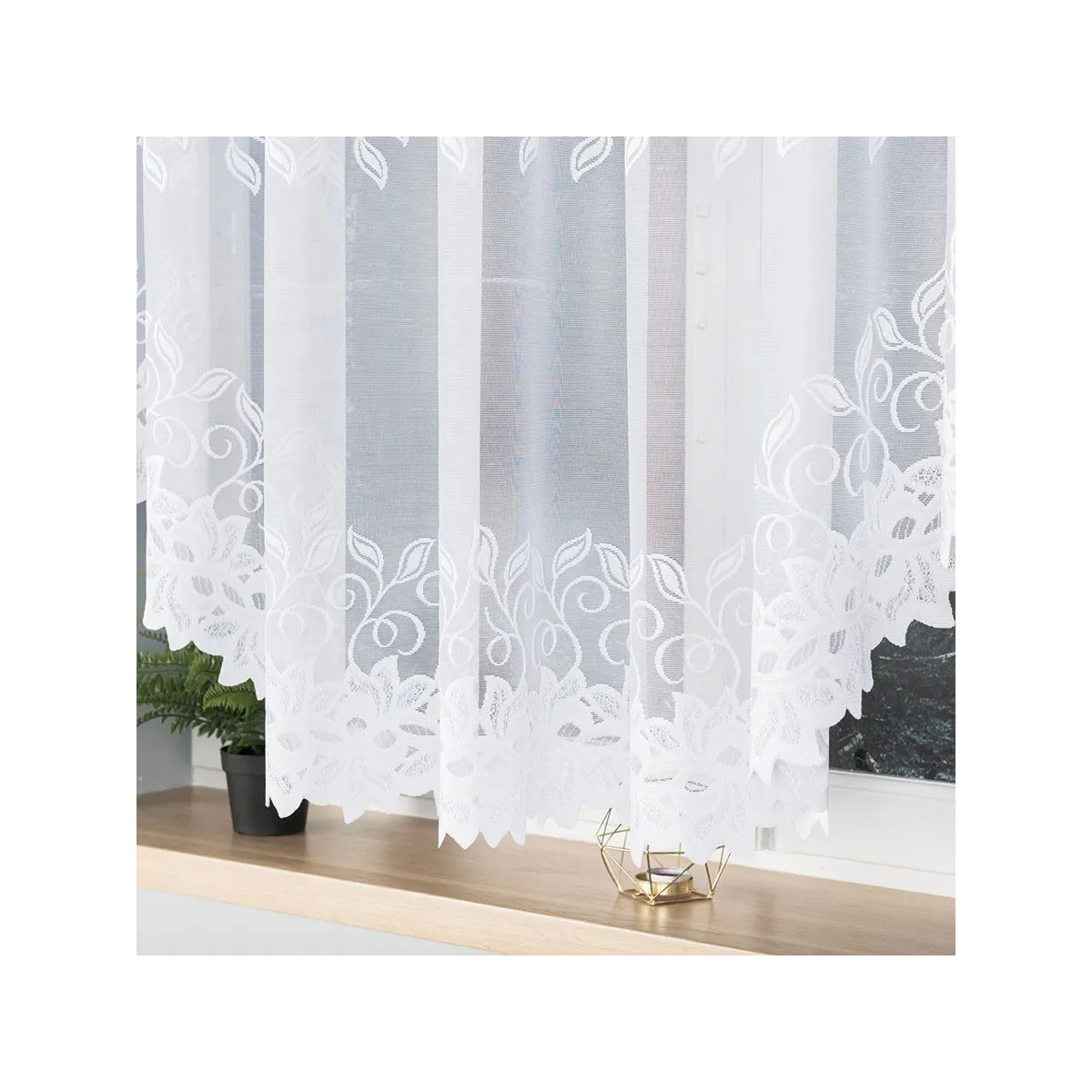- Wykończone boki bez obszycia – firanka jest gotowa do zawieszenia od razu po rozpakowaniu.