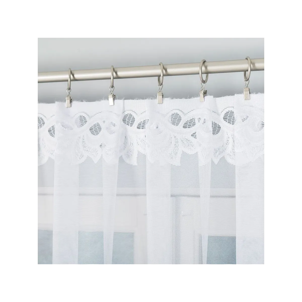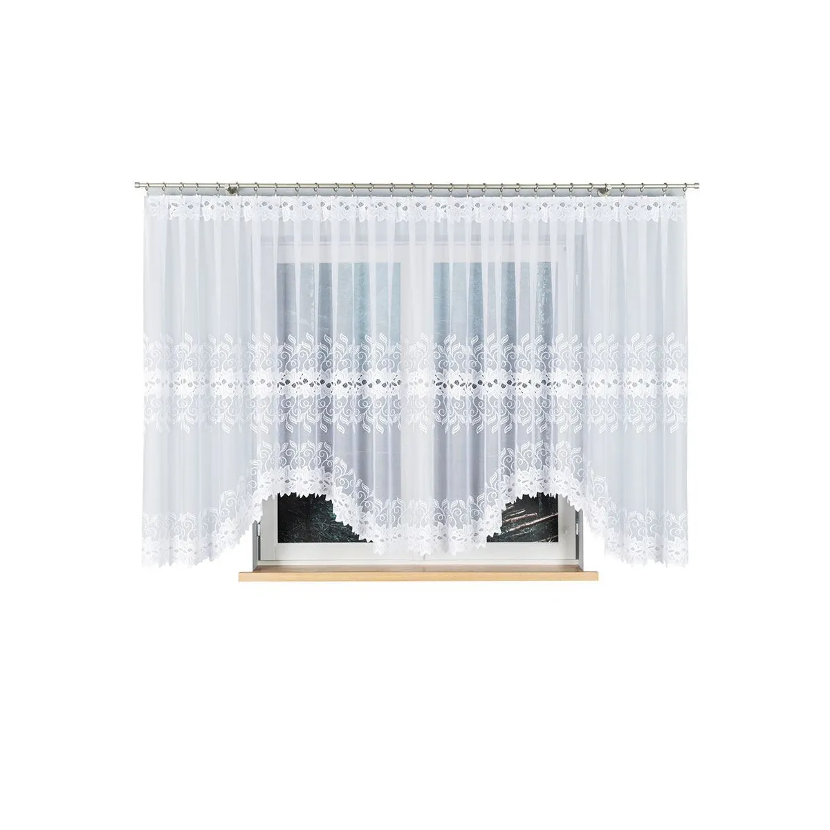 BASTIA sprawdzi się w salonie, sypialni, jadalni czy kuchni, wszędzie tam, gdzie chcesz uzyskać lekki efekt i klasyczną oprawę okna. Dzięki zawieszeniu na żabki łatwo dopasujesz jej ułożenie na karniszu, a ozdobny pas z ornamentami doda wnętrzu uporządkowanego, eleganckiego charakteru.