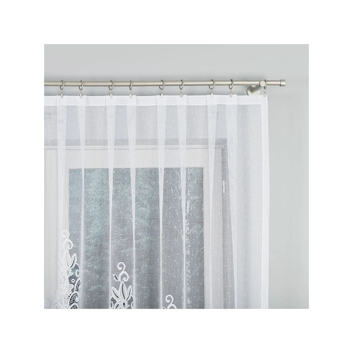 - Gotowa do zawieszenia Firankę łatwo zamocujesz na żabki, bez dodatkowych przeróbek.