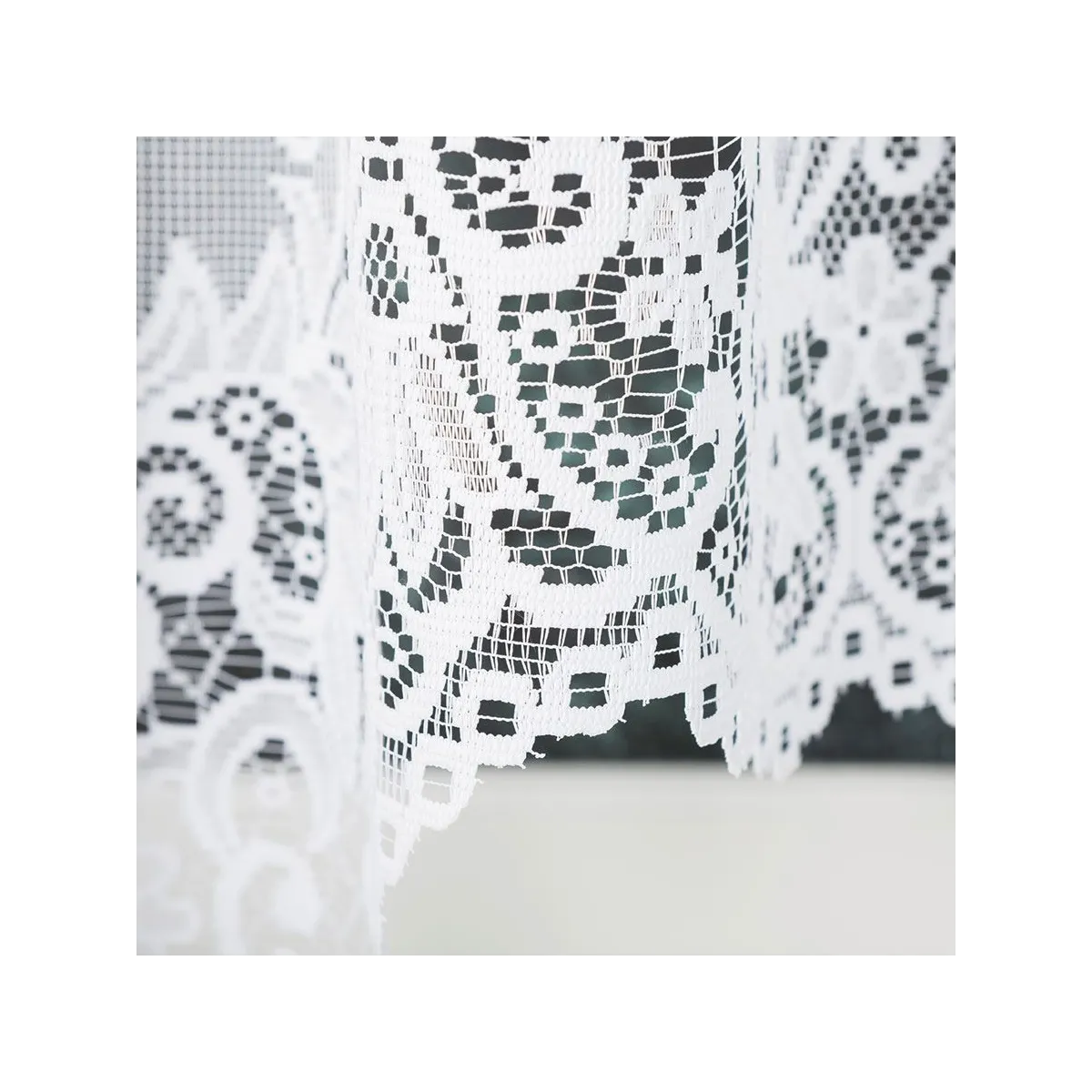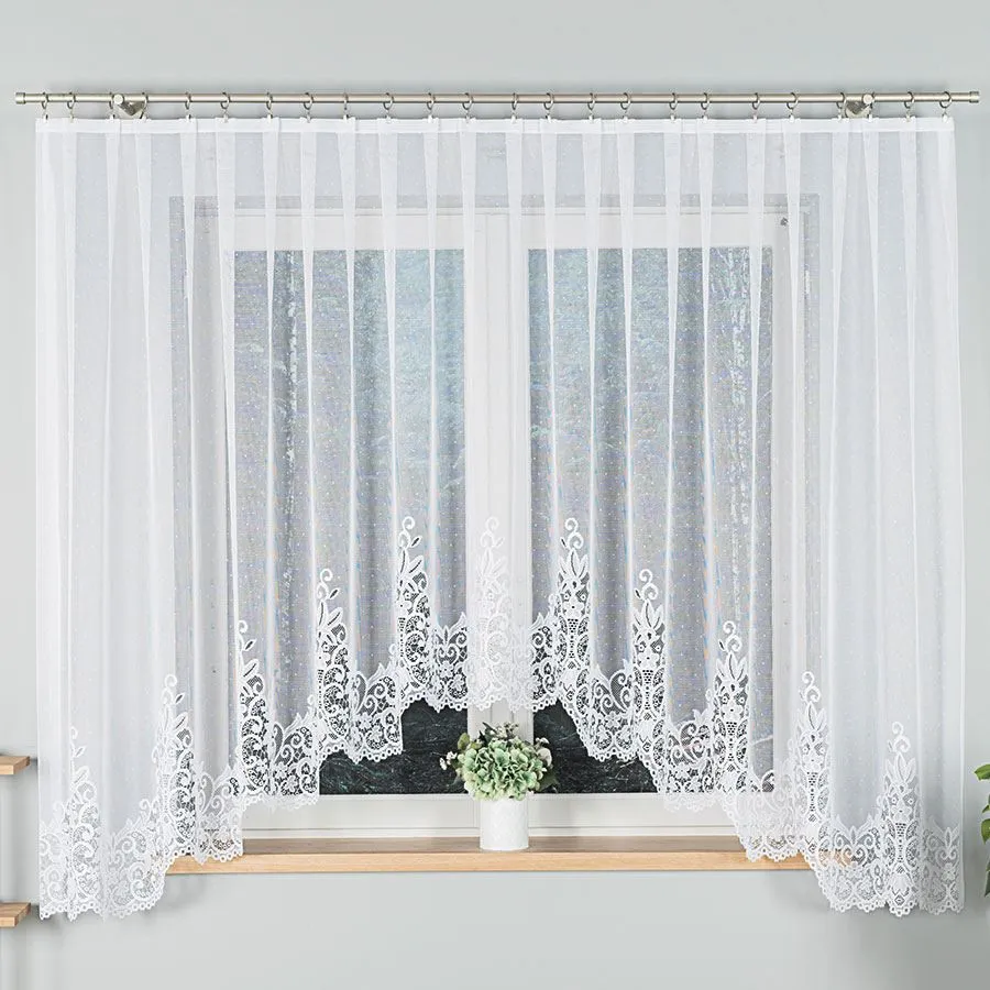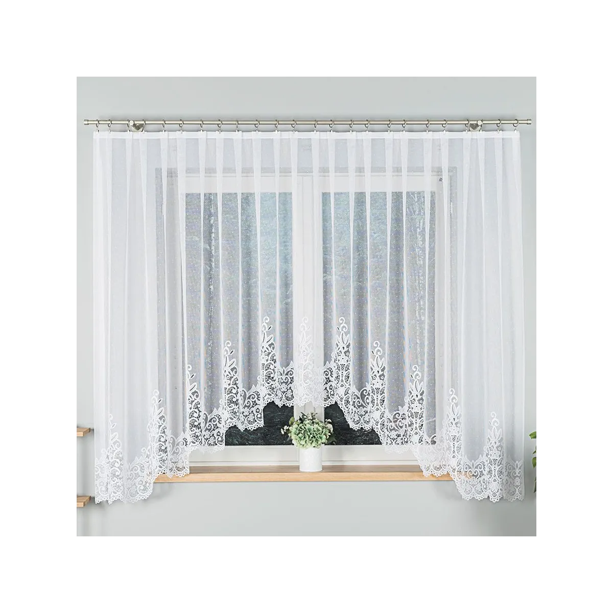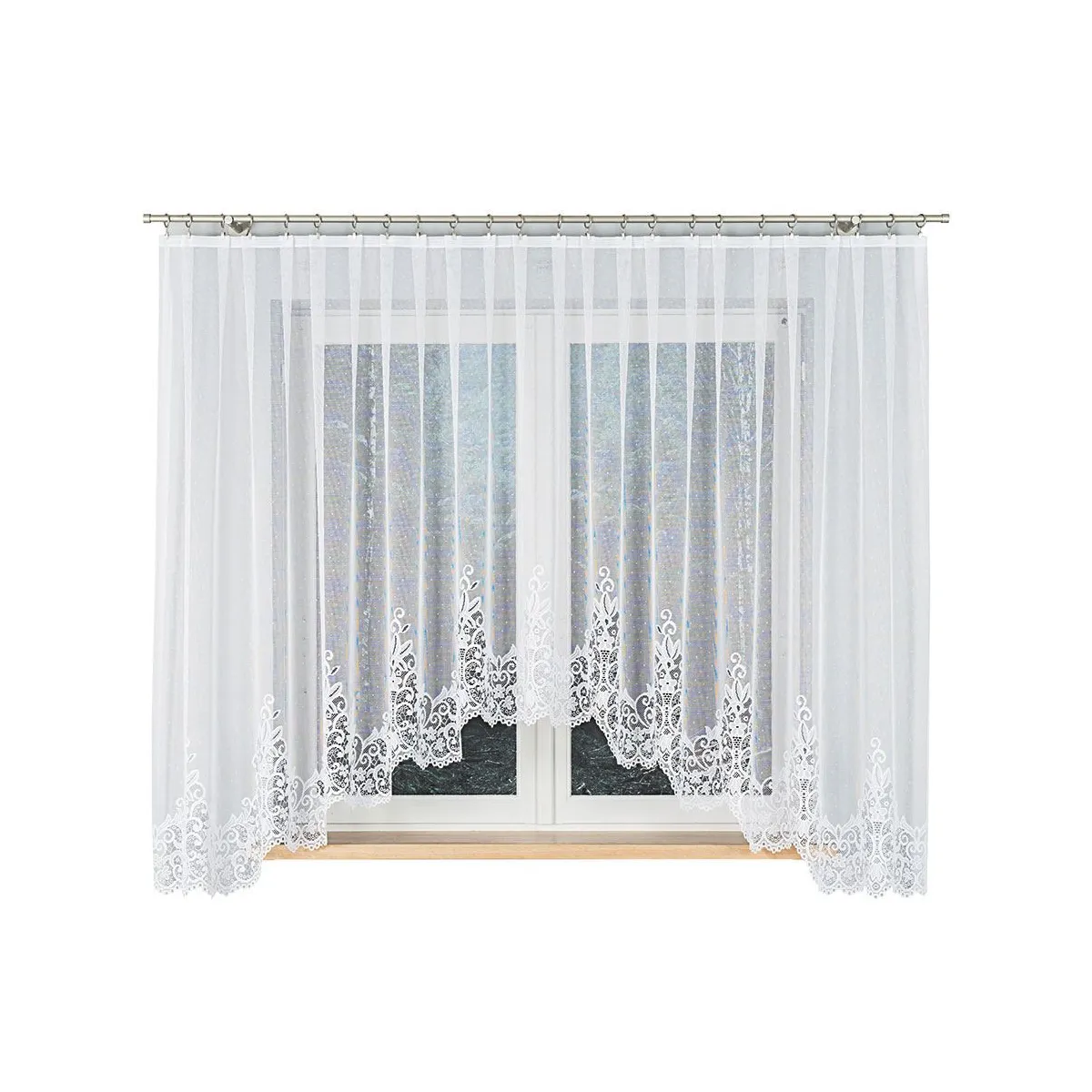 - Klasyczny styl – biała firana z ornamentami pasuje do wielu wystrojów i zawsze wygląda elegancko.
