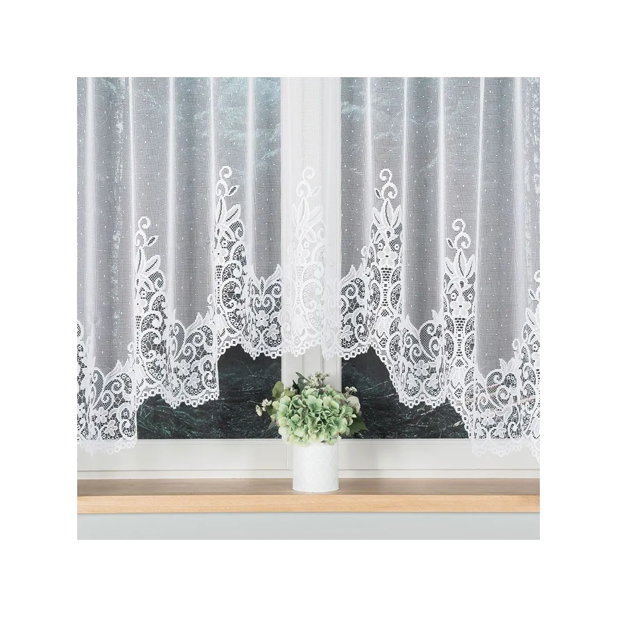 Firanka gotowa żakardowa BERENIKA w kolorze białym to ponadczasowy wybór do klasycznych i jasnych aranżacji. Wzór z ornamentami oraz dekoracyjne podcięcie na dole nadają całości subtelnej elegancji, jednocześnie nie przytłaczając wnętrza.