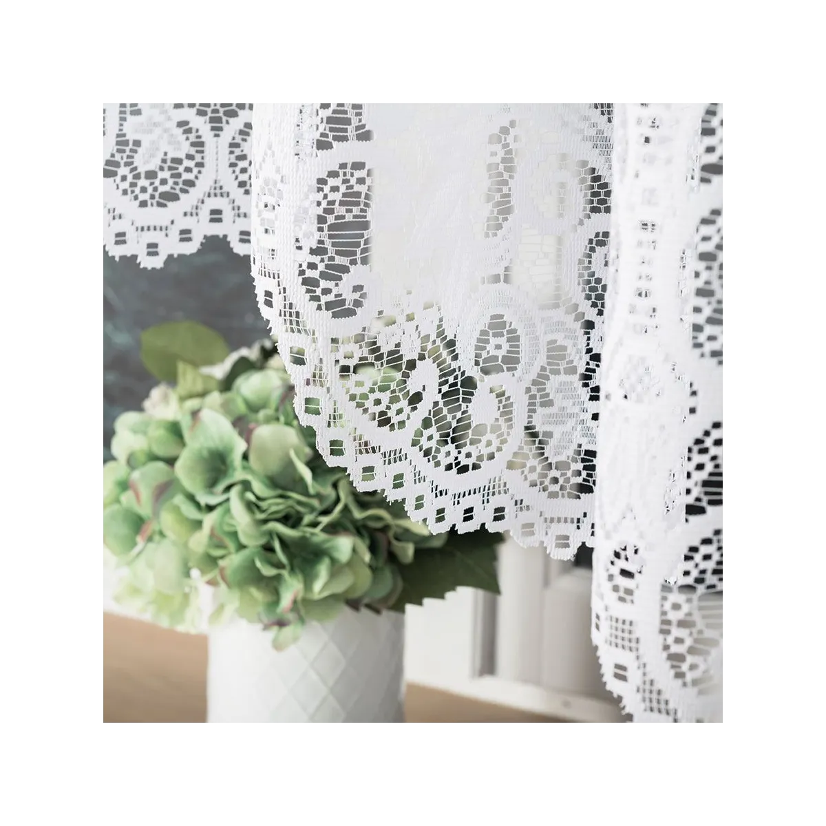 Rozmiar 400x170 cm świetnie pasuje do salonu, jadalni lub sypialni, szczególnie przy szerokich oknach. Biała, żakardowa struktura dodaje wnętrzu lekkości, a ornamenty subtelnie podkreślają strefę okienną w stylu klasycznym.