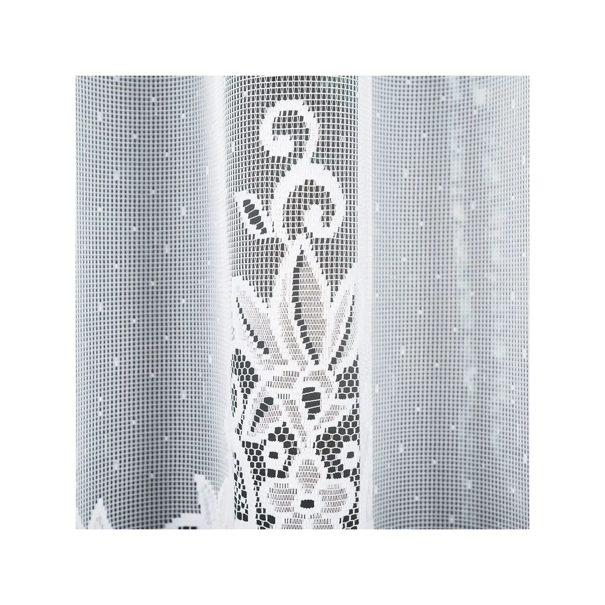 Model uszyty z dzianiny żakardowej o gramaturze 80–90 g/m2 (100% poliester) delikatnie filtruje światło i ładnie prezentuje się w oknie. Boki wykończone fabrycznie nie wymagają obszycia, a góra jest bez taśmy – firana przeznaczona jest do zawieszania na żabki. Wymiary 400x170 cm sprawdzą się przy szerszych karniszach, a tolerancja wymiaru wynosi +/- 3%.