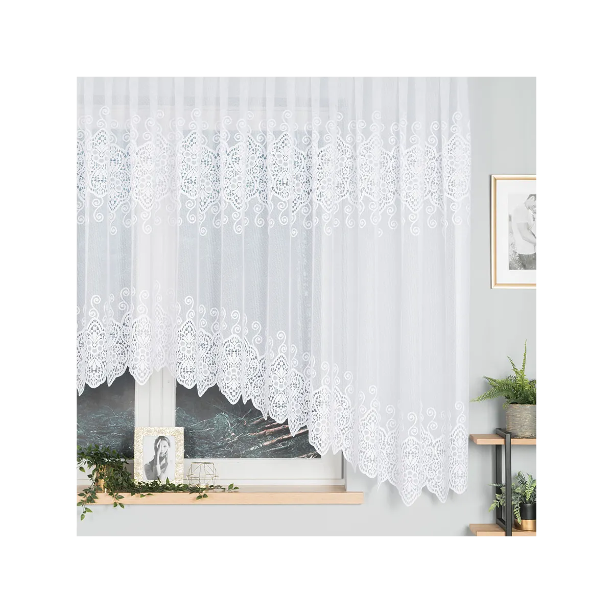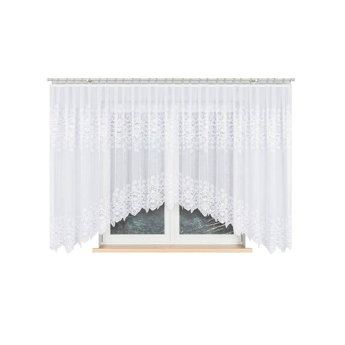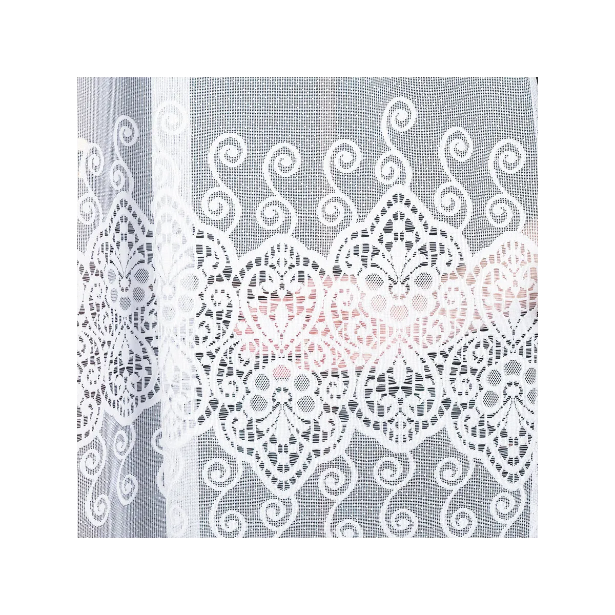 Firanka gotowa żakardowa CELINA marki Markizeta to propozycja dla osób, które szukają klasycznej, jasnej dekoracji okna z dopracowanym detalem. Biały kolor i ornamentowy wzór subtelnie rozświetlają wnętrze, a ozdobne podcięcie u dołu dodaje aranżacji elegancji.
