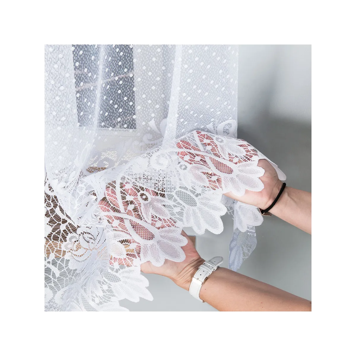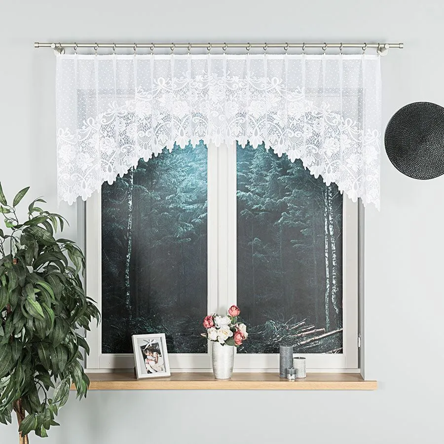 Firanka DEMETRIA będzie świetnym wyborem do kuchni, jadalni i salonu, gdzie liczy się lekkość i elegancki detal. Dzięki wysokości 80 cm dobrze komponuje się także w oknach nad blatem lub tam, gdzie zależy Ci na dekoracji bez pełnego zasłaniania przeszklenia.