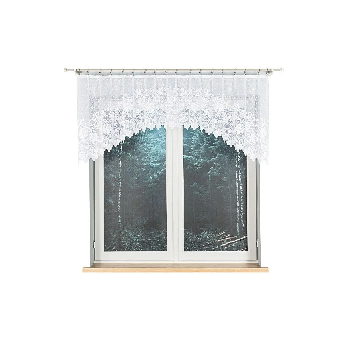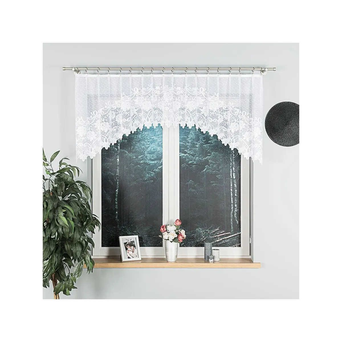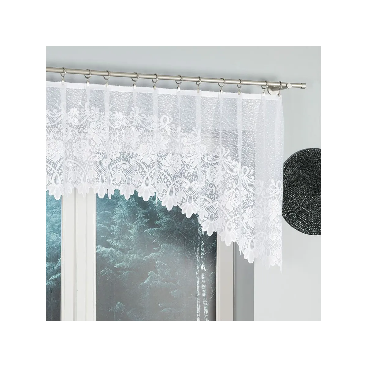 - Gotowa do zawieszenia Sposób montażu na żabki ułatwia szybkie odświeżenie dekoracji okna.