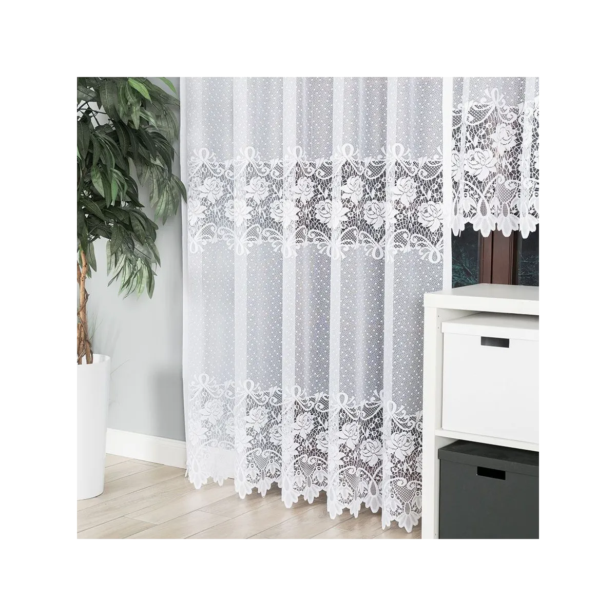 Dzięki swojej wysokości 250 cm, model ten idealnie sprawdzi się w pomieszczeniach o standardowej wysokości, sięgając niemal do samej podłogi. Prosty dół firanki wykończony ozdobnym ząbkowaniem dodaje całości harmonii i sprawia, że tkanina układa się w estetyczne, regularne fale. To doskonałe rozwiązanie dla osób zapracowanych – materiał żakardowy jest niezwykle "wdzięczny" w konserwacji, nie wymaga żmudnych zabiegów pielęgnacyjnych, a efekt końcowy zawsze wygląda profesjonalnie.