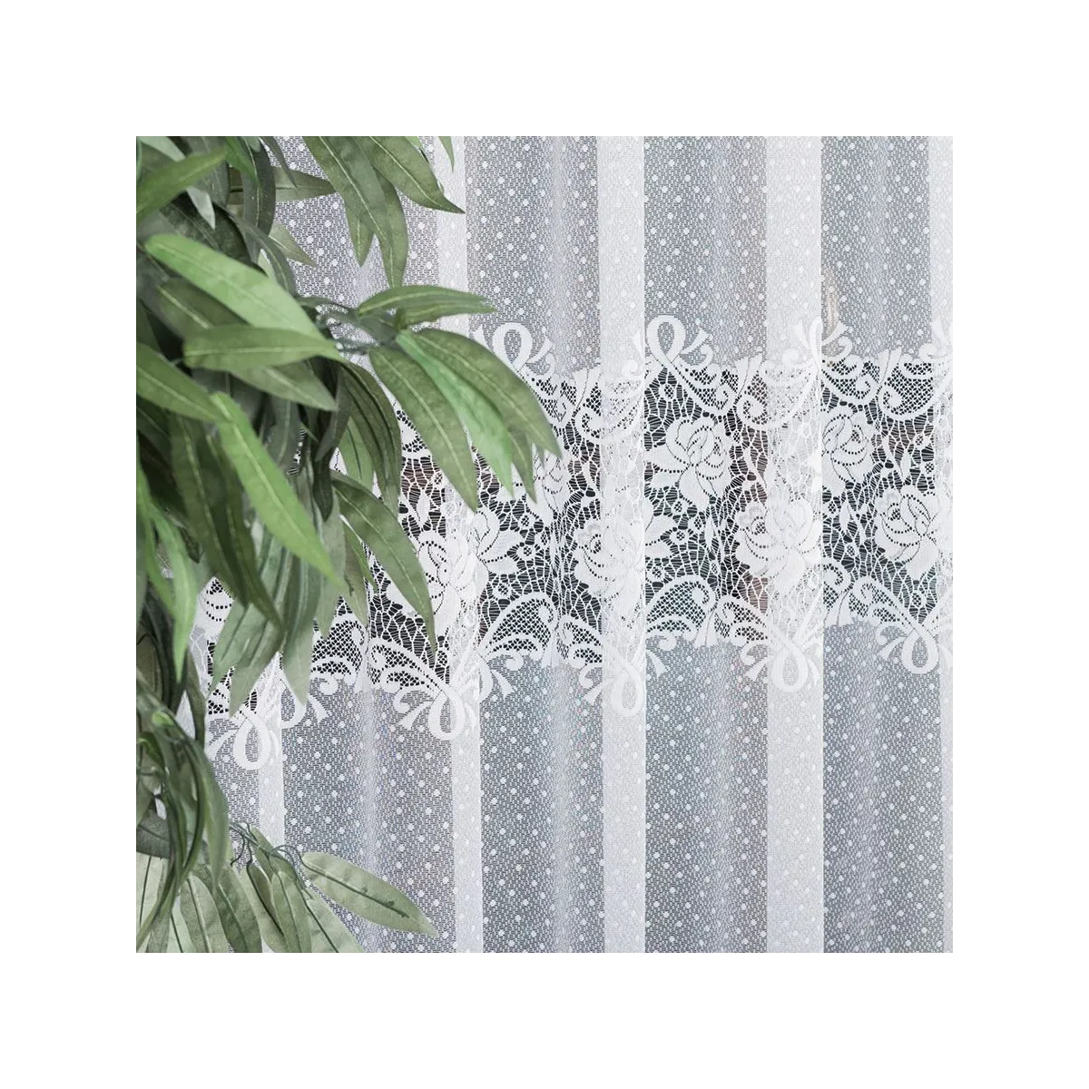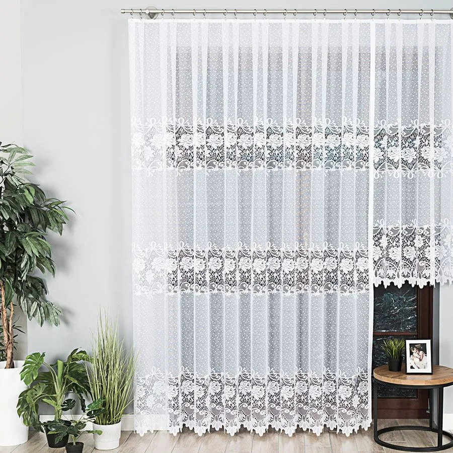 Dzięki wysokości 250 cm, model ten jest stworzony do salonu z wyjściem na balkon oraz wysokich sypialni. Prosty dół i elegancki wzór sprawiają, że firanka doskonale komponuje się zarówno ze stylem klasycznym, jak i nowoczesnym czy glamour, dodając im szczyptę ponadczasowego szyku.