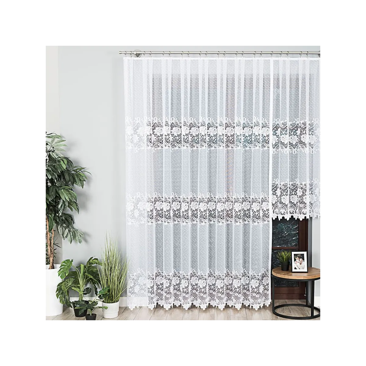 - Szybki montaż: Firanka jest gotowa do natychmiastowego zawieszenia na tradycyjnych żabkach, co pozwala na błyskawiczną metamorfozę każdego pomieszczenia.