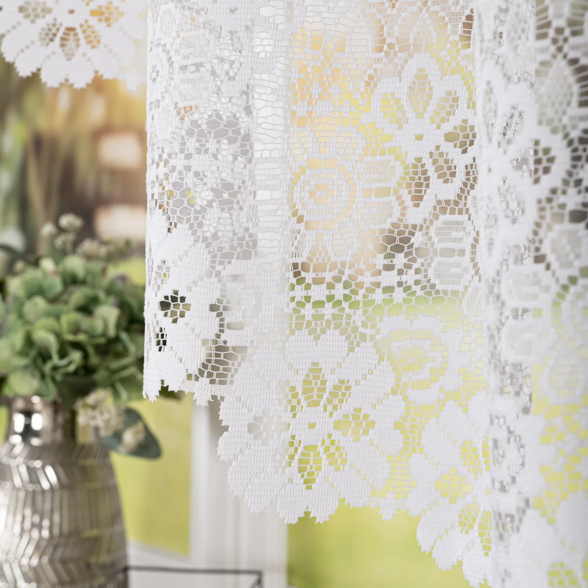 - Bez obszywania boków Fabrycznie wykończone boki pozwalają od razu zawiesić firankę po wyjęciu z opakowania.