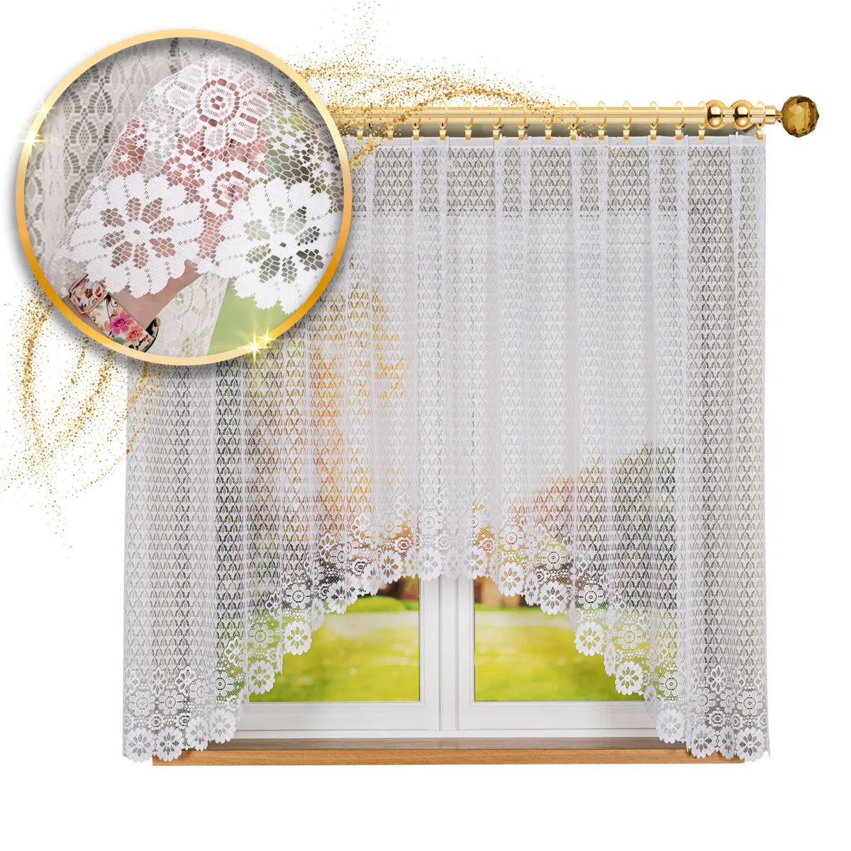 Model FAUSTYNA będzie świetnym wyborem do salonu, sypialni, jadalni czy kuchni – wszędzie tam, gdzie chcesz uzyskać jasną, przytulną oprawę okna. Dzięki wymiarowi 250x120 cm sprawdzi się na standardowych oknach, a tolerancja wymiaru +/- 3% pozwala na naturalne różnice wynikające z produkcji.