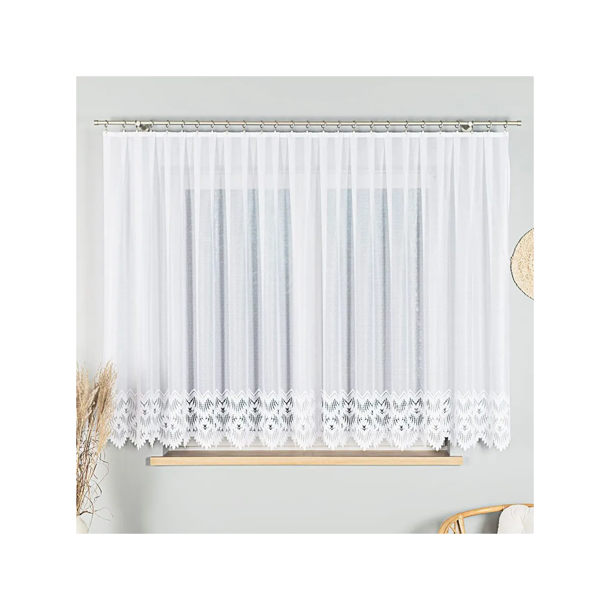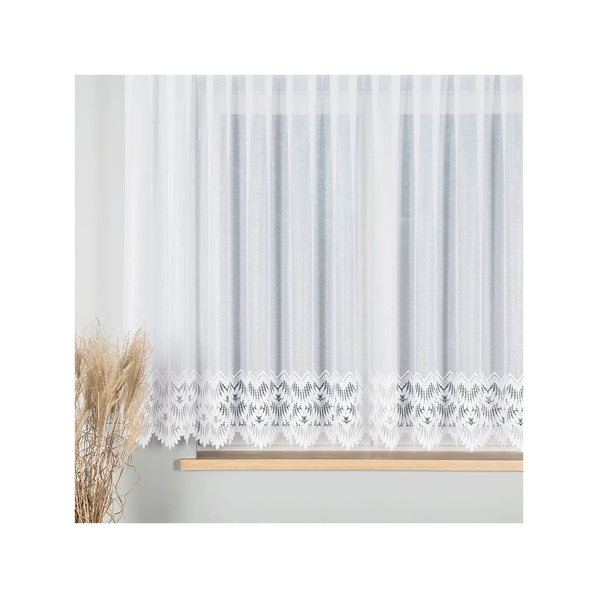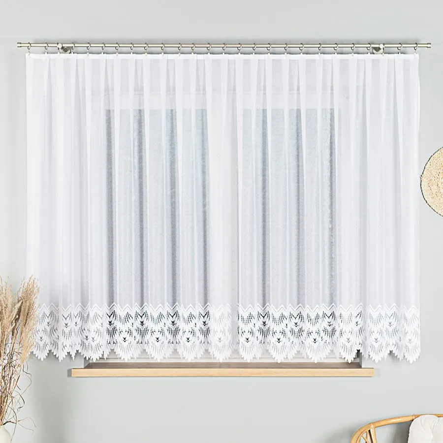 Firanka Felicja została zaprojektowana z myślą o osobach, które pragną wprowadzić do swojego domu powiew świeżości i klasycznego stylu. Dzięki imponującej szerokości 400 cm, model ten pięknie prezentuje się na dużych przeszkleniach, tworząc efektowne marszczenia, które dodają wnętrzu przytulności. Śnieżnobiały odcień żakardu w połączeniu z kunsztownym, geometryczno-kwiatowym pasem na dole sprawia, że okno staje się centralnym punktem dekoracyjnym salonu czy sypialni.