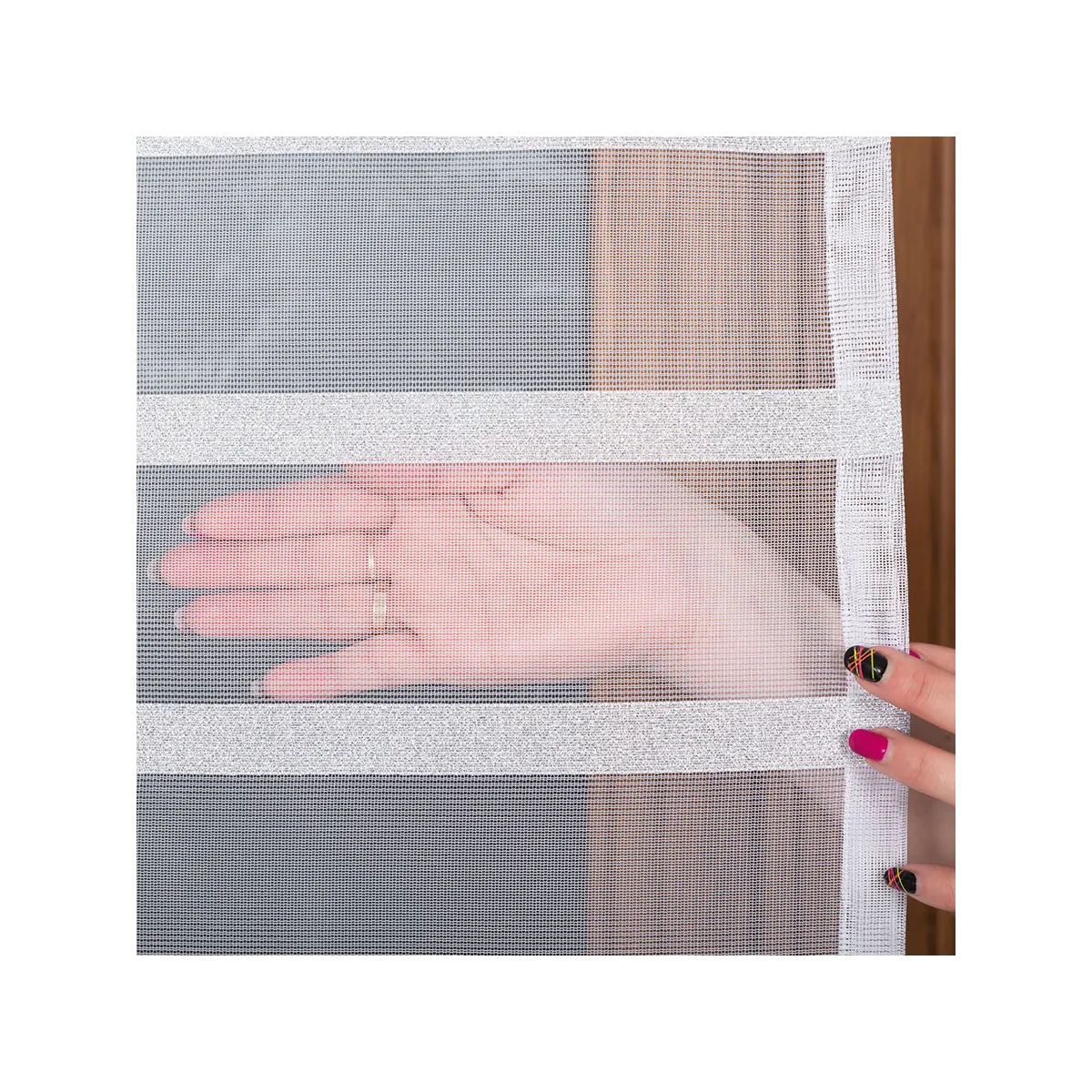 - Doskonała cyrkulacja powietrza: Struktura drobnej siateczki sprawia, że materiał jest niezwykle przewiewny, co pozwala na swobodną wymianę powietrza nawet przy zamkniętym oknie.