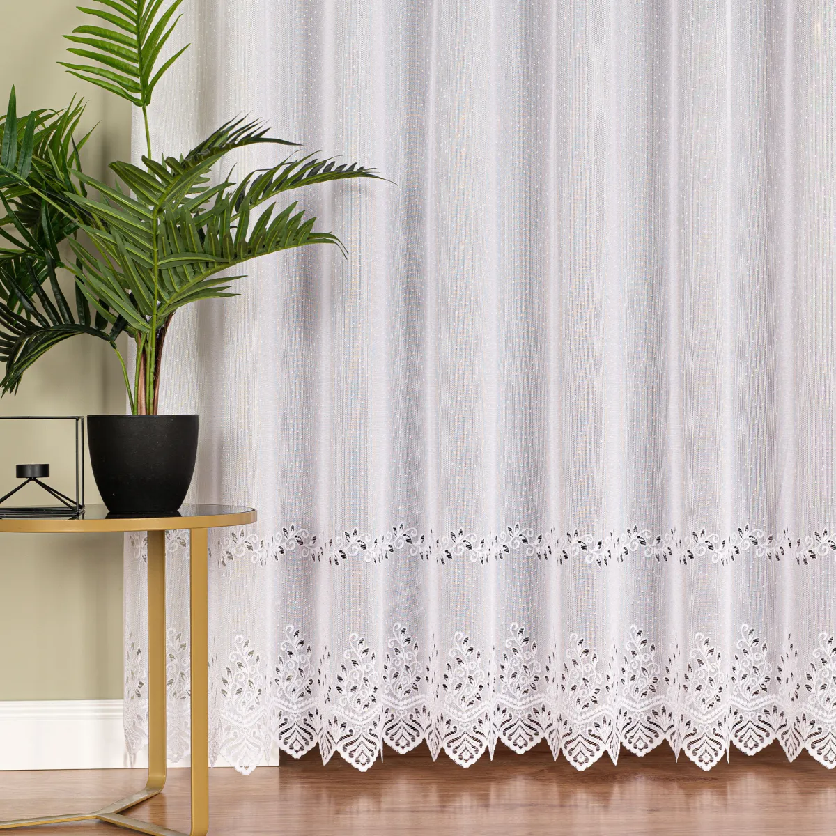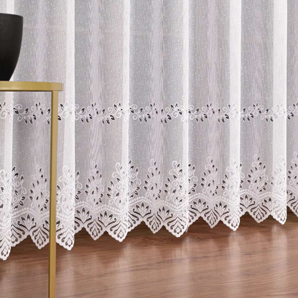 - Brak konieczności prasowania: Specyfika splotu żakardowego sprawia, że firanka po praniu i wilgotnym zawieszeniu na oknie sama odzyskuje swój pierwotny kształt.