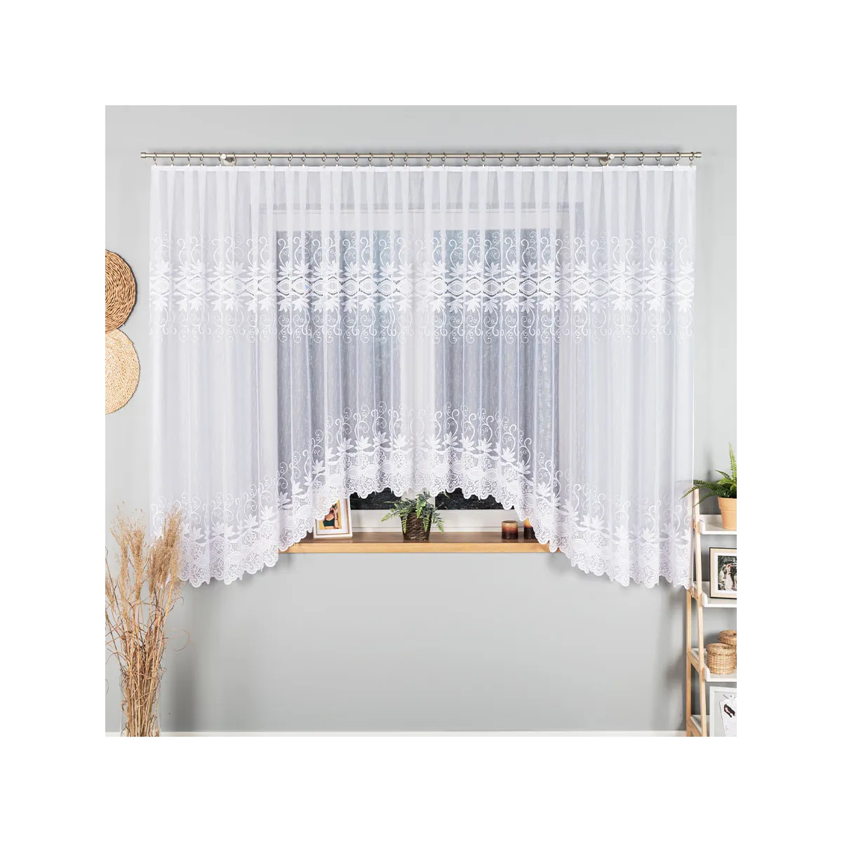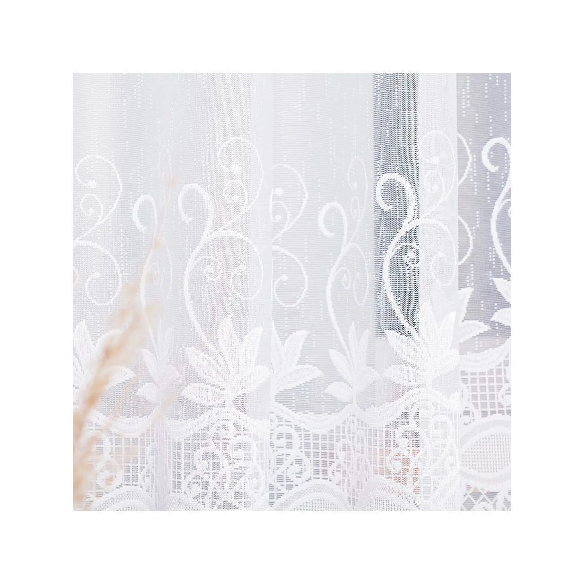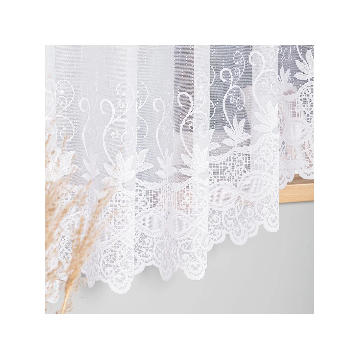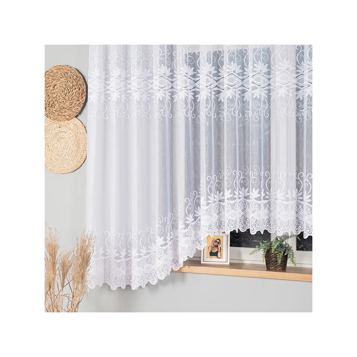 Postaw na JOWITĘ, jeśli szukasz gotowej firanki żakardowej, która łączy ponadczasowy wygląd z dopracowanym wykończeniem — wystarczy zawiesić i cieszyć się eleganckim efektem.