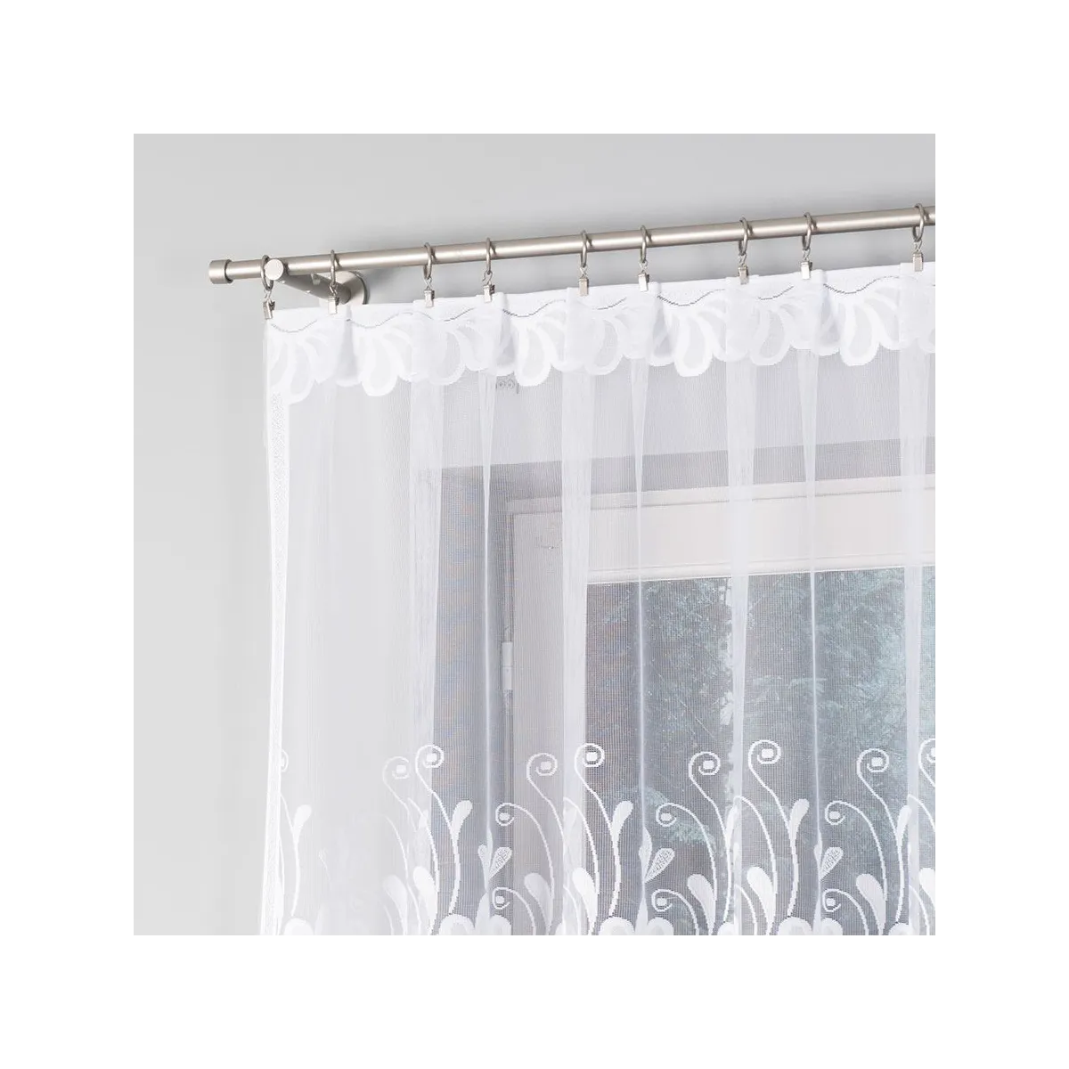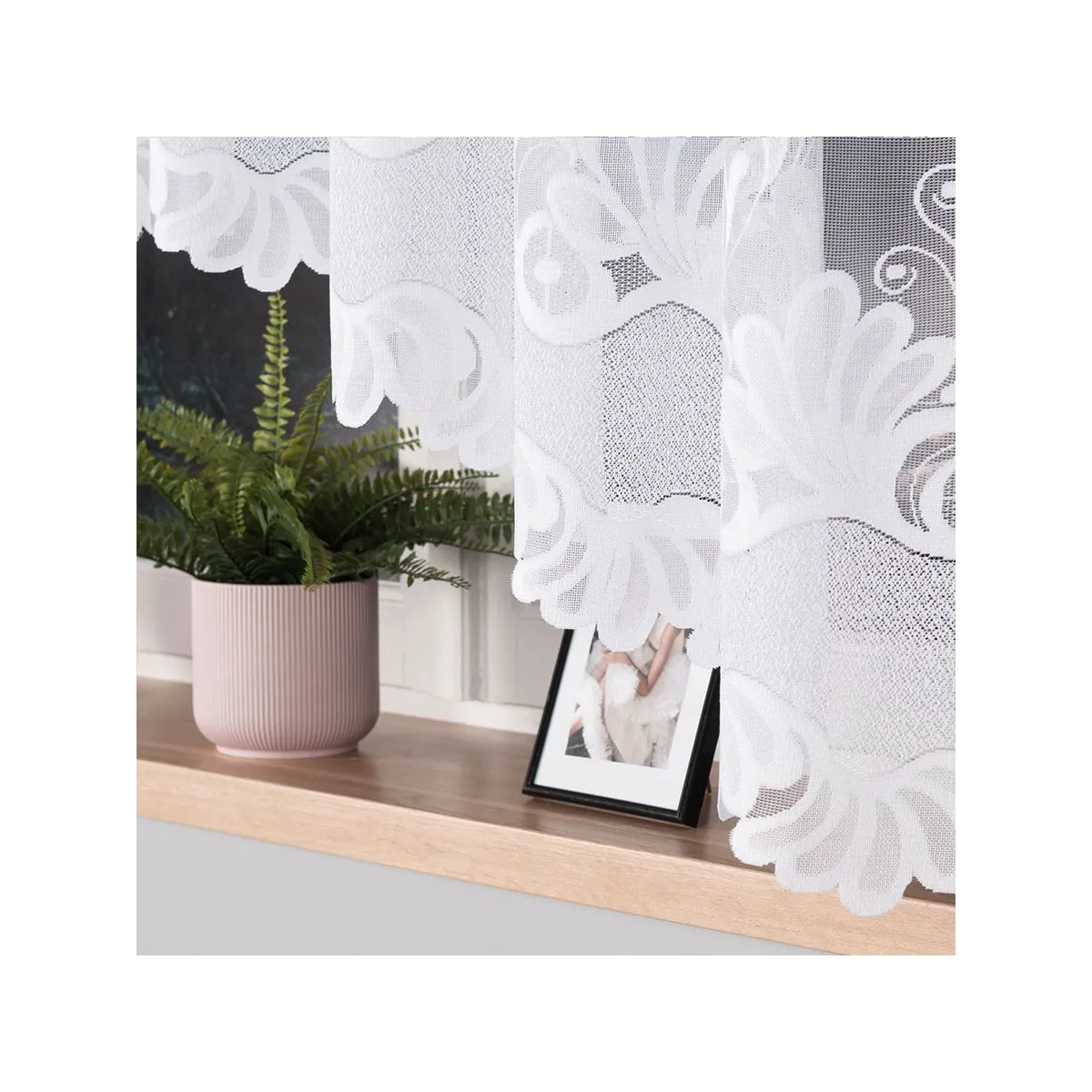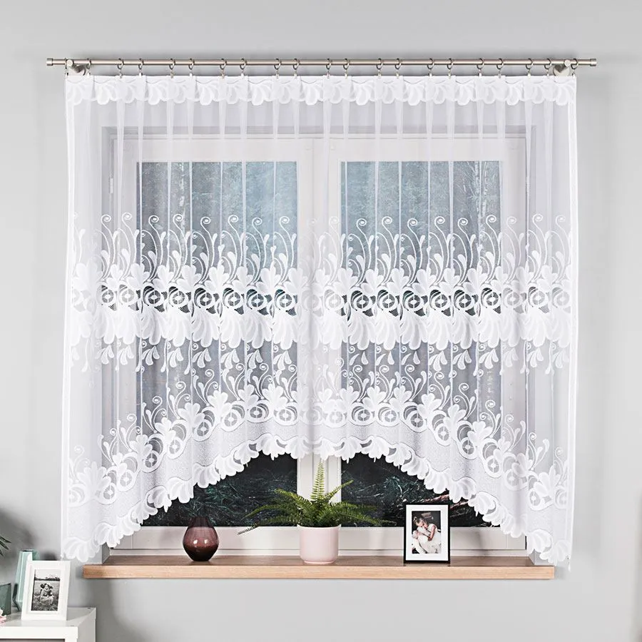 Firanka będzie idealna do salonu, sypialni, jadalni oraz kuchni – wszędzie tam, gdzie chcesz uzyskać jasną, klasyczną oprawę okna. Szerokość 320 cm i wysokość 160 cm (tolerancja wymiaru +/- 3%) ułatwiają dopasowanie do standardowych, większych okien.