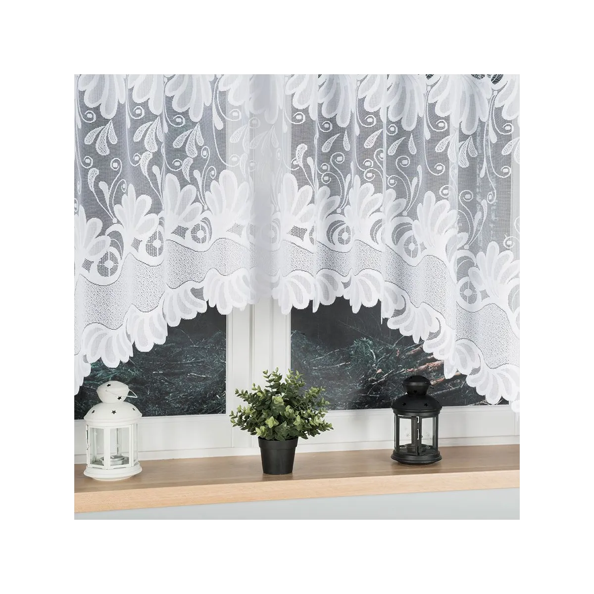 Biała firanka KASJANA będzie świetnym wyborem do salonu, sypialni, jadalni czy pokoju gościnnego – wszędzie tam, gdzie chcesz uzyskać jasny, uporządkowany efekt i delikatną dekorację okna. Klasyczny styl i ornamenty łatwo połączysz zarówno z tradycyjnymi meblami, jak i spokojnymi, nowoczesnymi dodatkami.