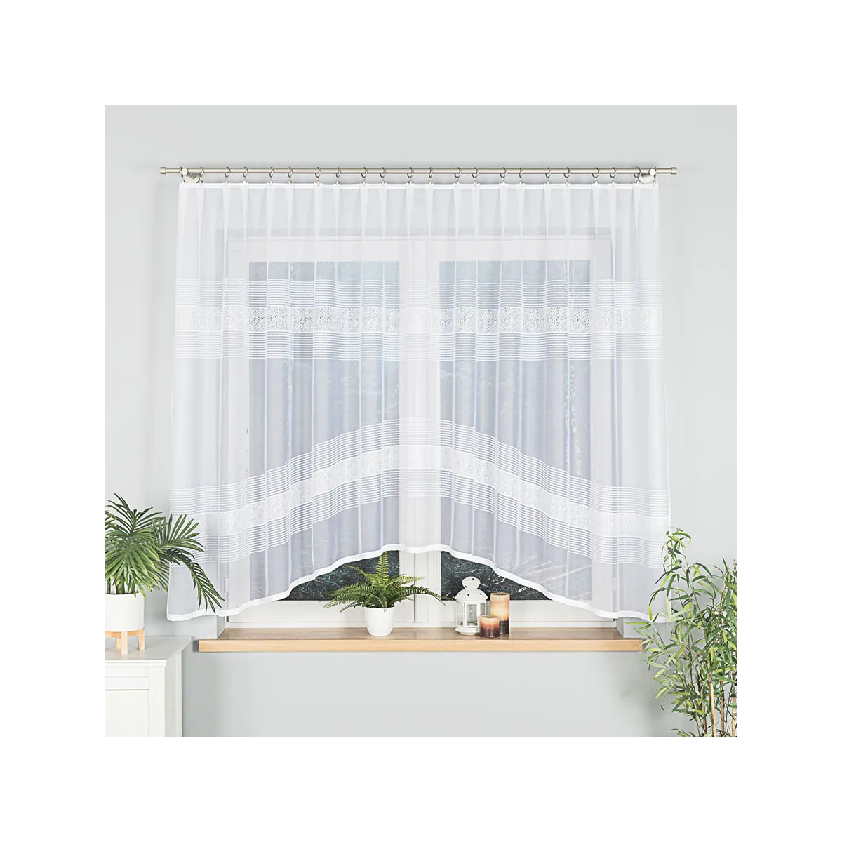 Dzięki białej kolorystyce i nowoczesnemu stylowi firanka KLAUDYNA pasuje do salonu, sypialni, jadalni oraz pokoju młodzieżowego. Dobrze wygląda zarówno w jasnych aranżacjach skandynawskich, jak i we wnętrzach bardziej minimalistycznych, gdzie liczy się czysta forma i lekkość dekoracji okiennej.