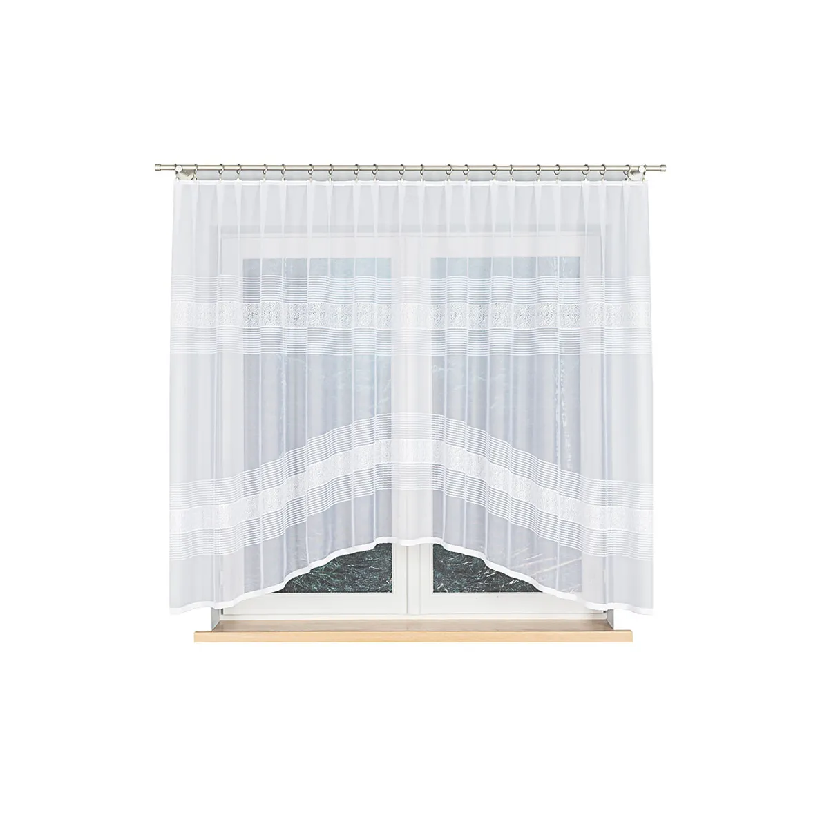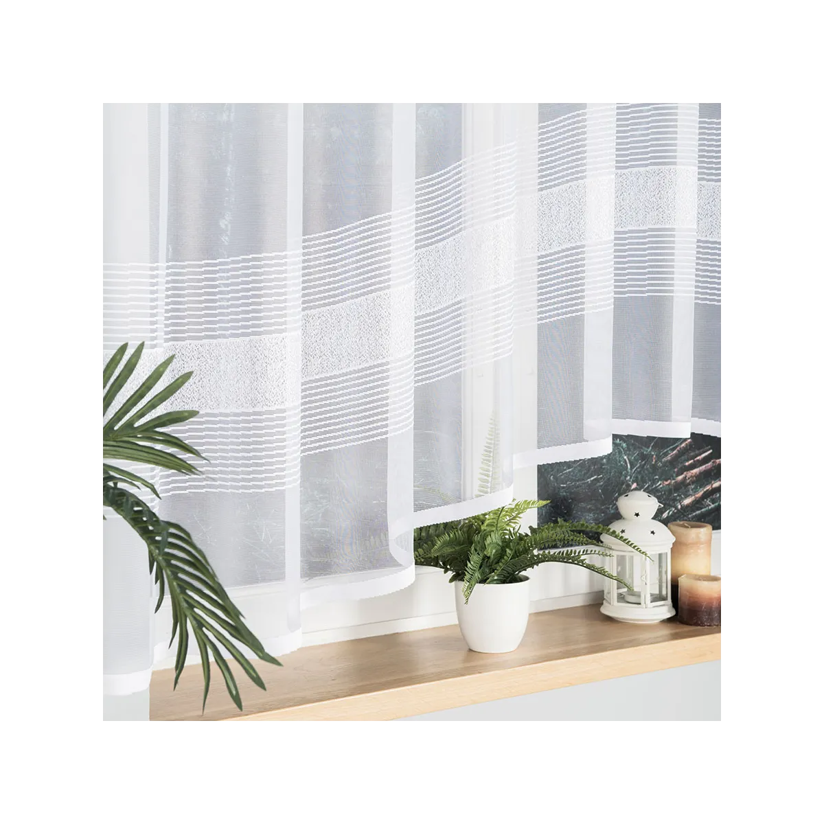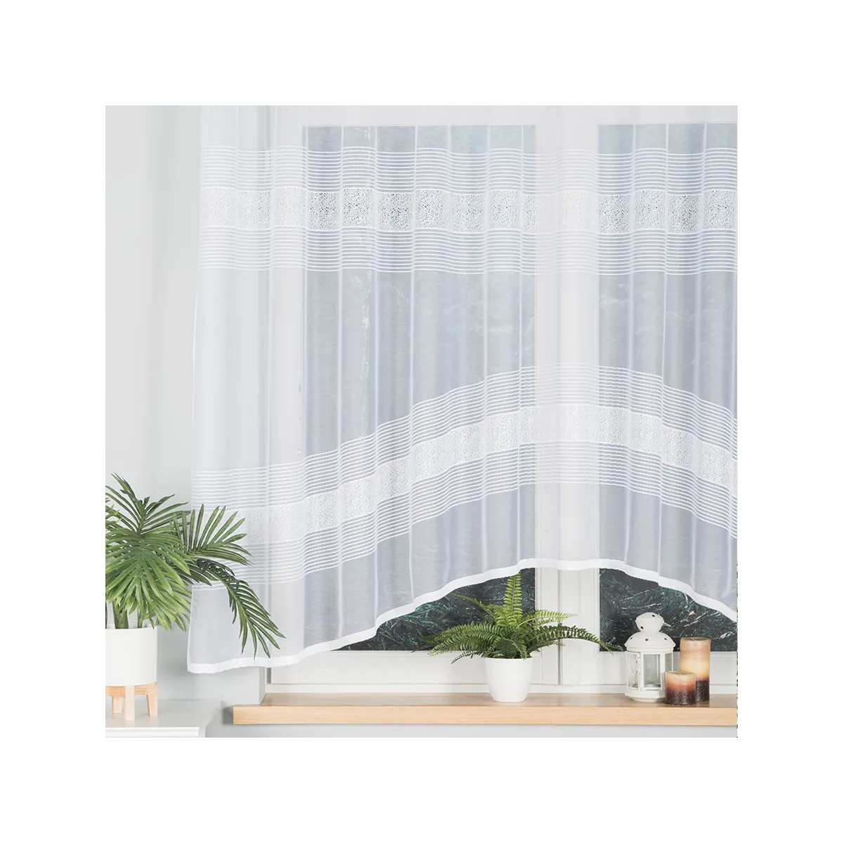 Firanka gotowa żakardowa KLAUDYNA marki Markizeta to propozycja dla osób, które lubią szybkie metamorfozy wnętrza i elegancką prostotę. Biała dzianina żakardowa z poziomymi pasami prezentuje się lekko i nowocześnie, a podcięcie na dole dodaje oknu dekoracyjnego charakteru.