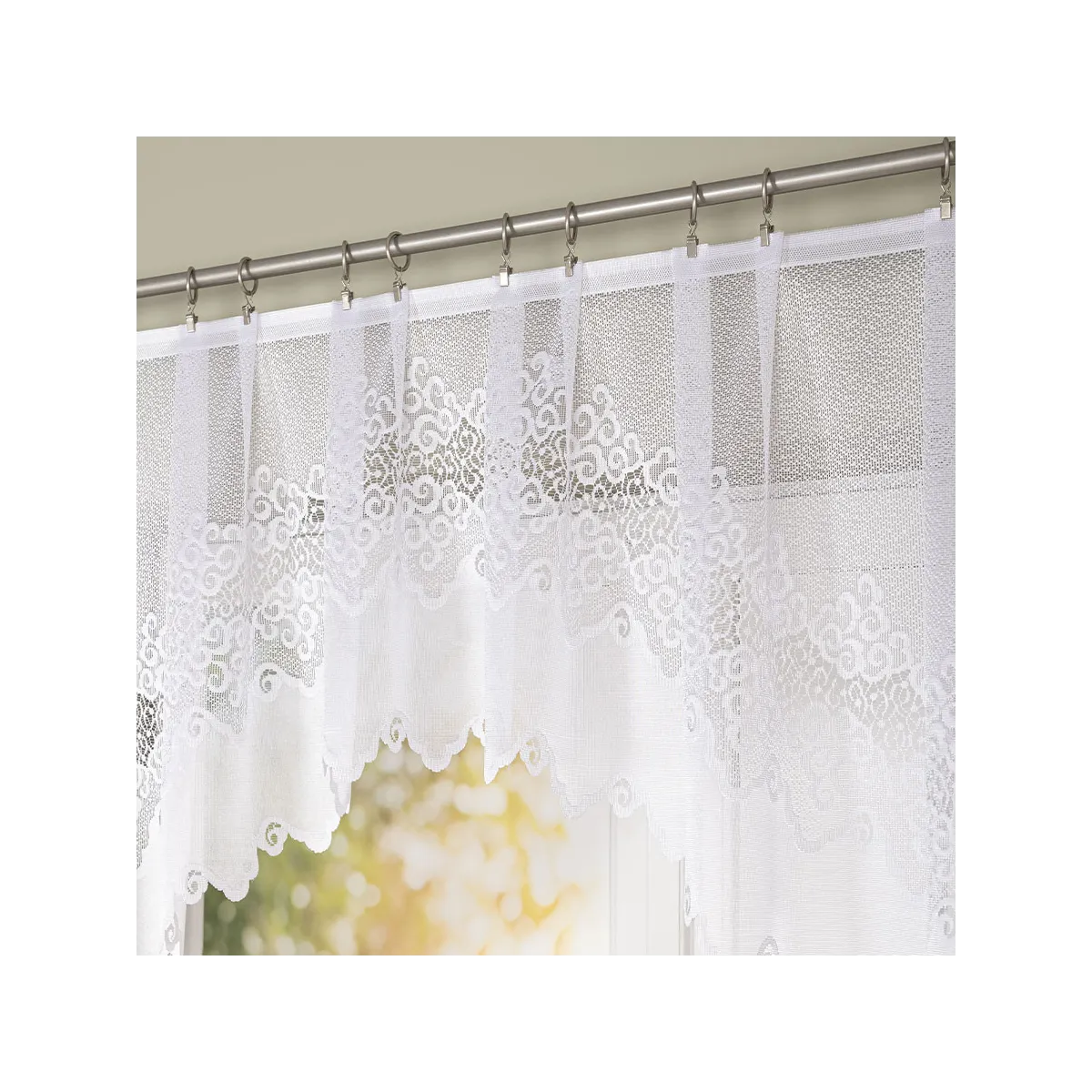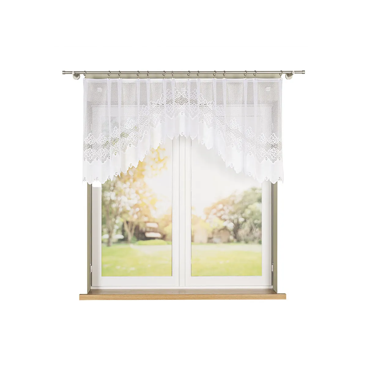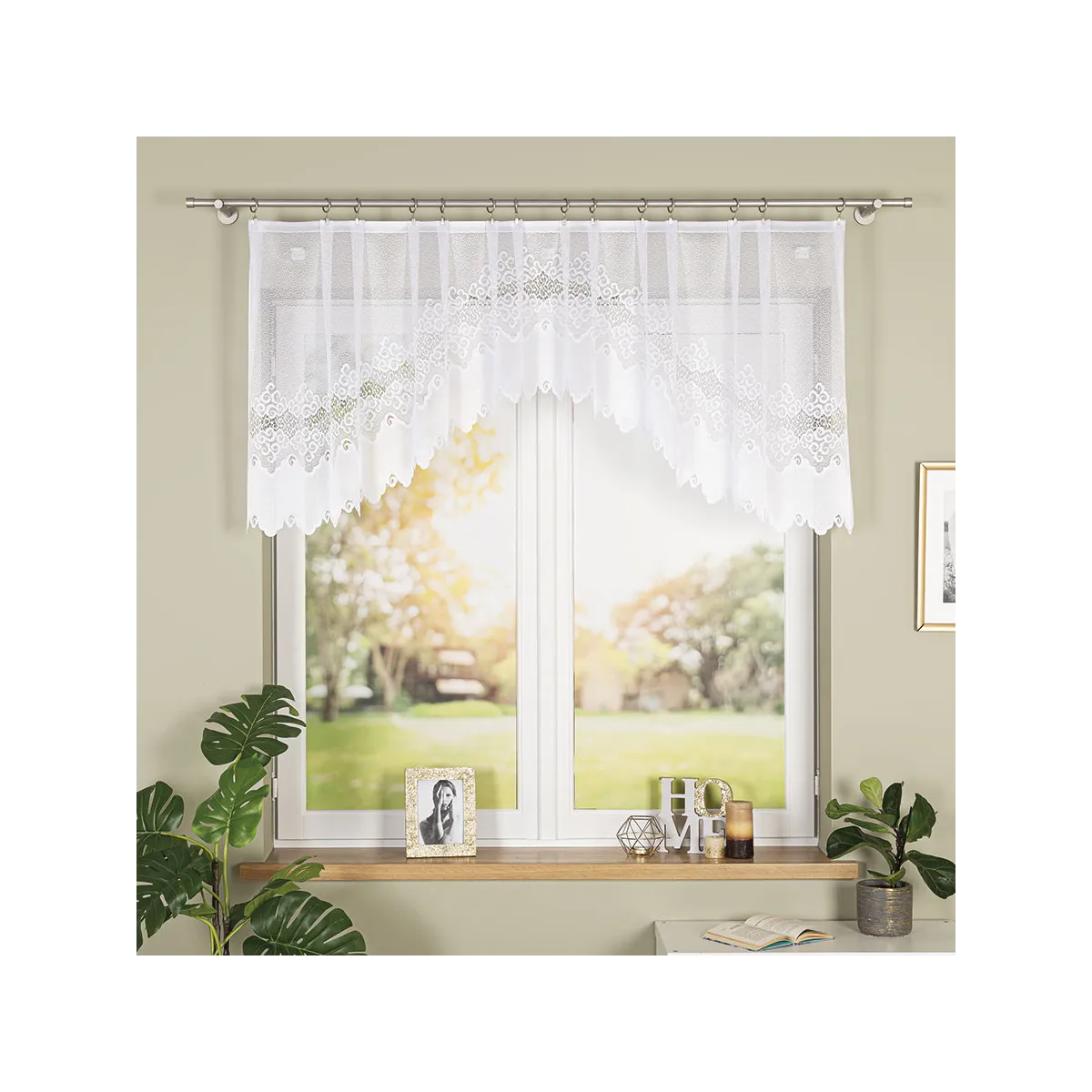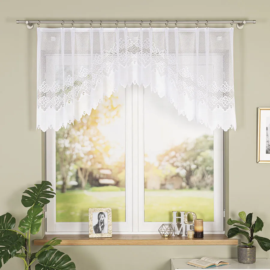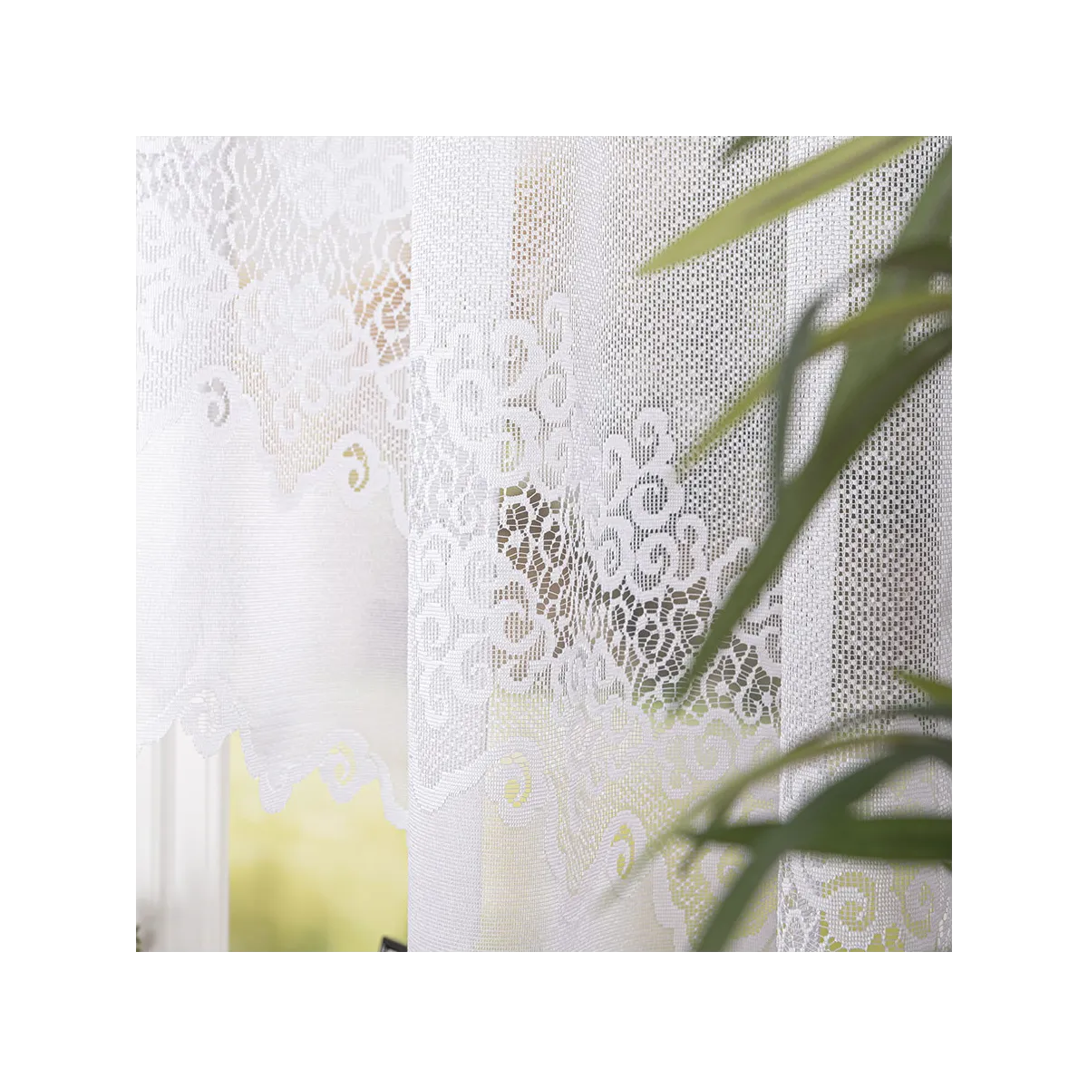 To klasyczna firanka gotowa o wymiarach 250x80 cm, uszyta z dzianiny żakardowej o gramaturze 80–90 g/m². Skład 100% poliester sprzyja trwałości i wygodzie użytkowania, a staranne, fabryczne wykończenie boków pozwala powiesić ją bez dodatkowego obszywania. Góra jest wykończona fabrycznie (bez taśmy), a zawieszenie na żabki ułatwia szybką zmianę dekoracji.
