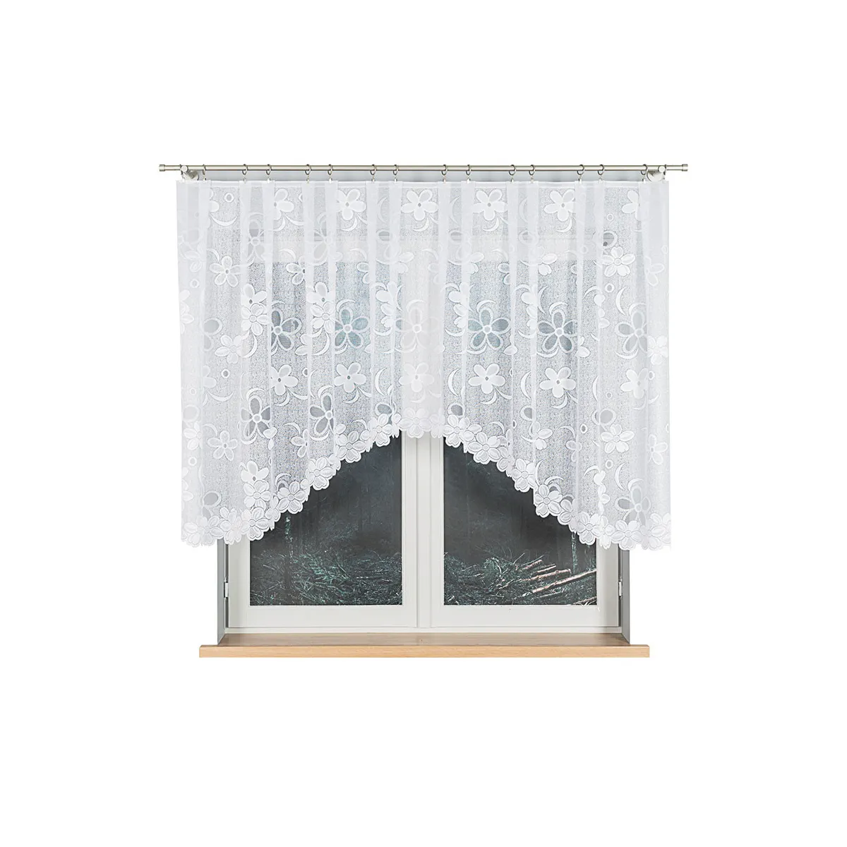 Firanka gotowa żakardowa RENATA marki Markizeta to elegancka propozycja dla osób, które cenią klasyczne firanki i subtelne dekoracje okienne. Biała dzianina żakardowa z motywem kwiatów wprowadza do wnętrza lekkość, a efektowne podcięcie na dole pięknie podkreśla linię okna.