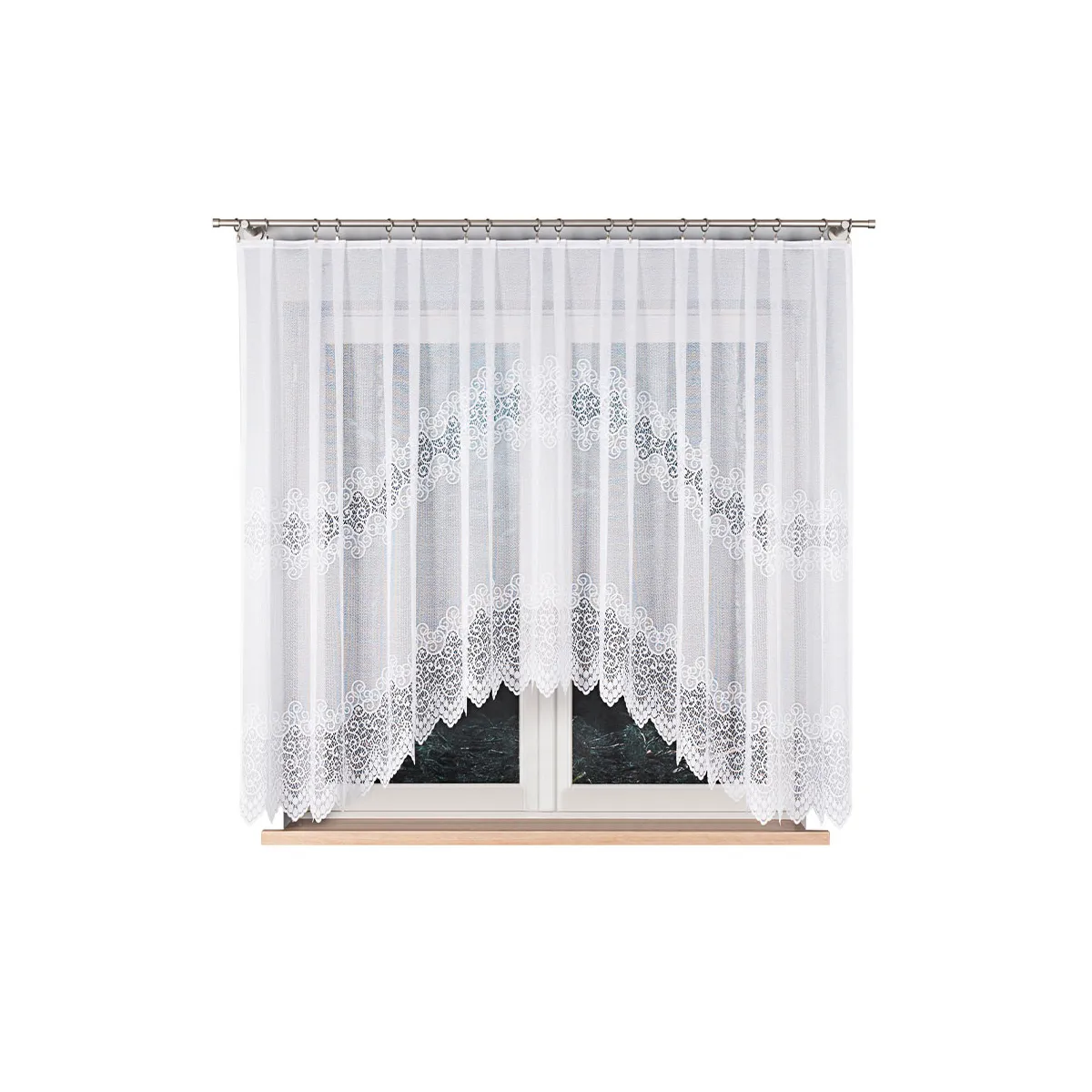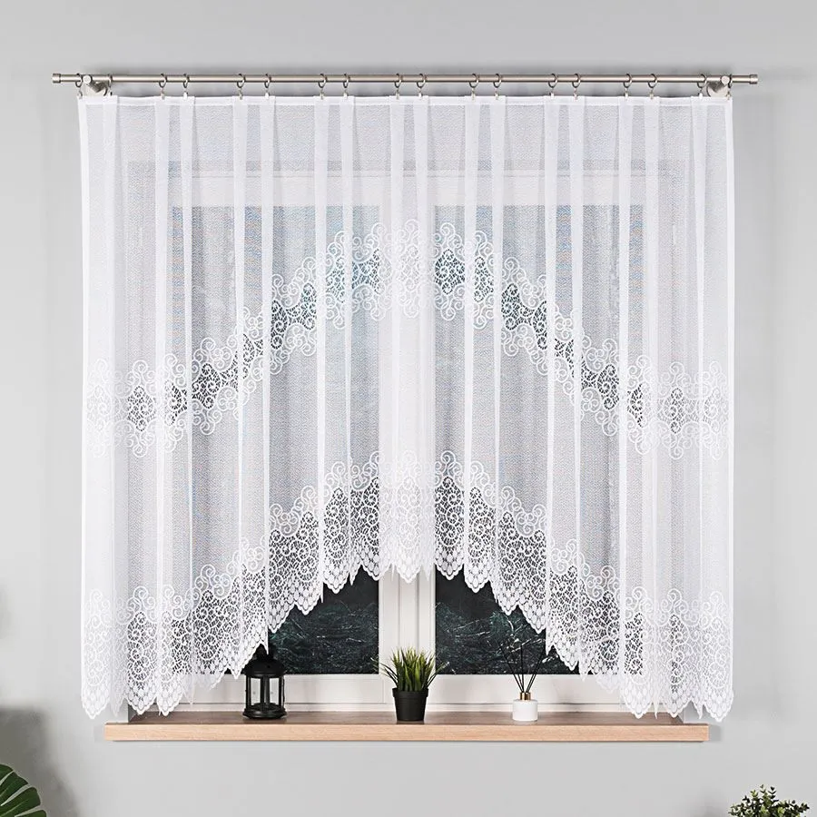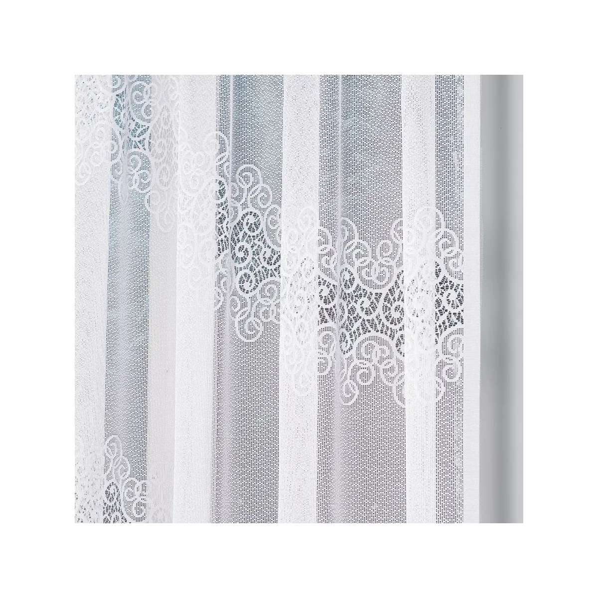 VIOLETTA będzie dobrym wyborem do salonu, sypialni, jadalni czy kuchni – wszędzie tam, gdzie liczy się lekkość bieli i dekoracyjny, klasyczny akcent. Rozmiar 300x160 cm dobrze prezentuje się na standardowych oknach, a tolerancja wymiaru +/- 3% ułatwia dopasowanie do wnęki i karnisza.