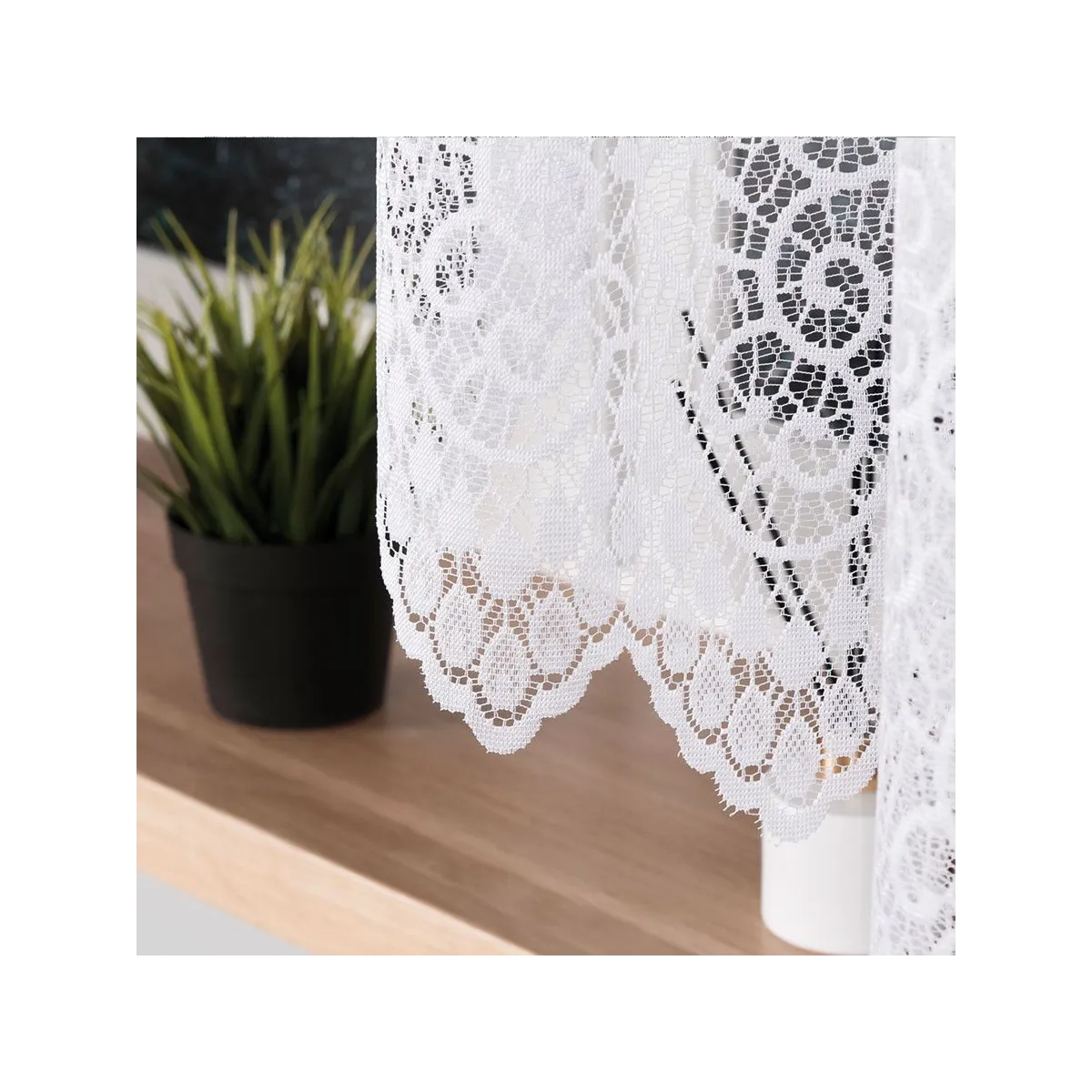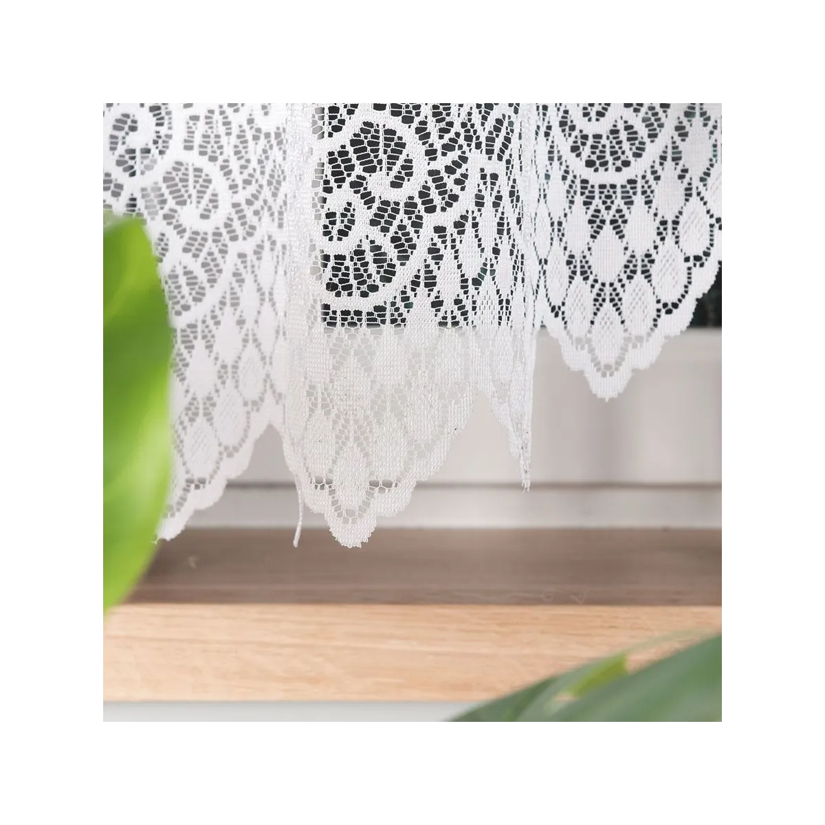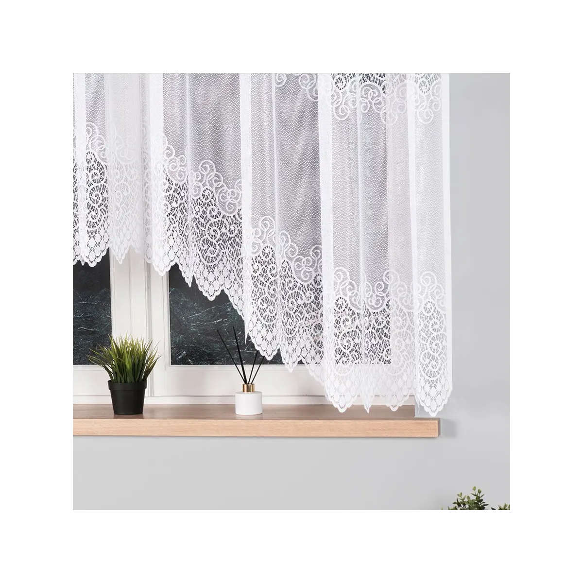 VIOLETTA będzie dobrym wyborem do salonu, sypialni, jadalni czy kuchni – wszędzie tam, gdzie liczy się lekkość bieli i dekoracyjny, klasyczny akcent. Rozmiar 300x160 cm dobrze prezentuje się na standardowych oknach, a tolerancja wymiaru +/- 3% ułatwia dopasowanie do wnęki i karnisza.