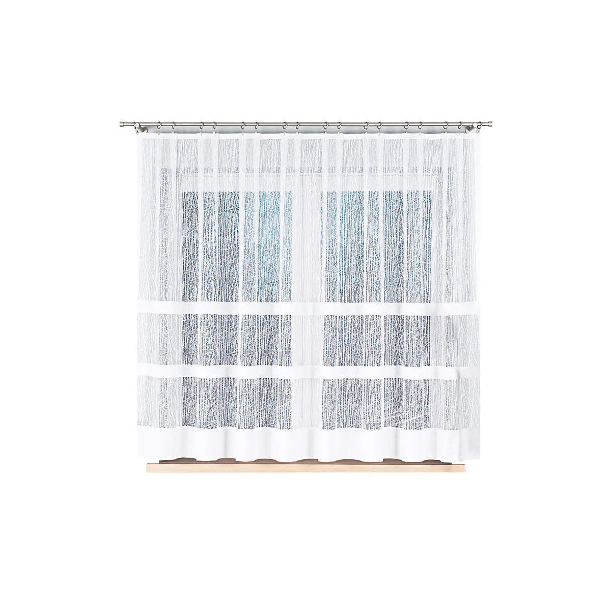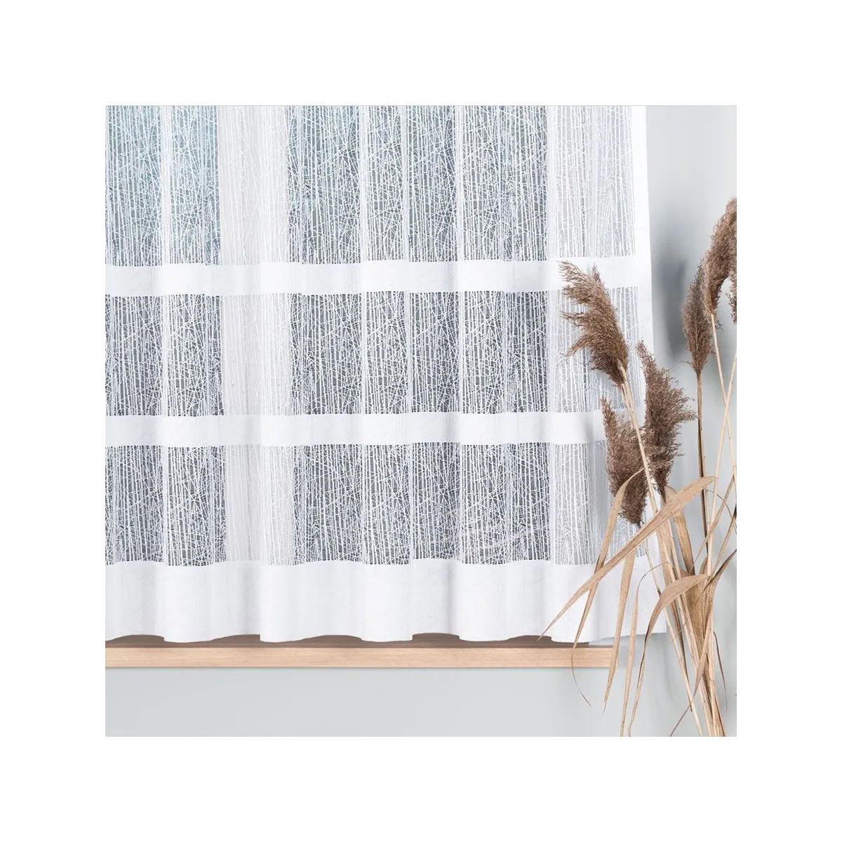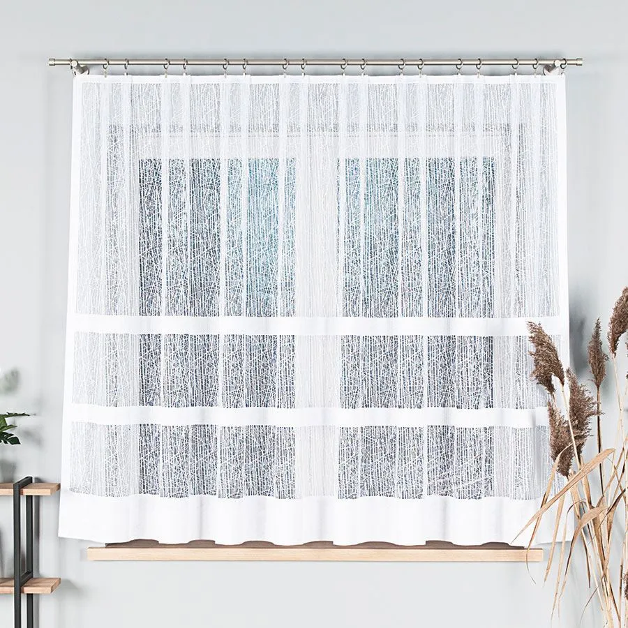 Gotowa firanka żakardowa WIKTORIA o wymiarach 310x160 cm to kwintesencja klasycznej elegancji w śnieżnobiałym wydaniu. Model charakteryzuje się prostym wykończeniem dołu oraz bogatym, pasowym wzorem, który doskonale wypełnia przestrzeń okienną, zapewniając stylowy wygląd i przytulną atmosferę w każdym domowym wnętrzu.