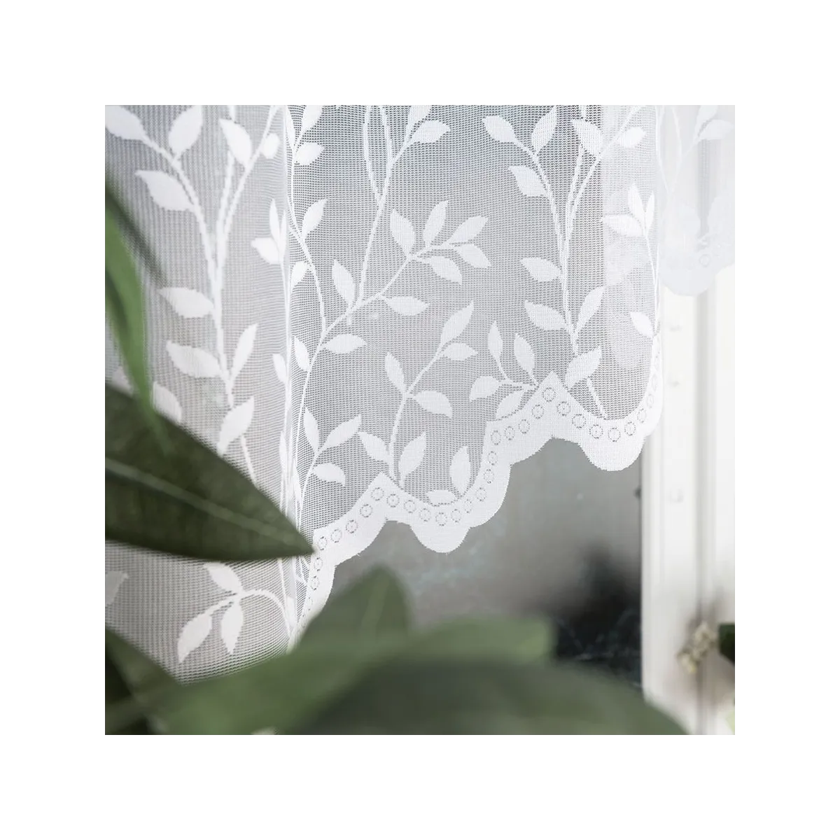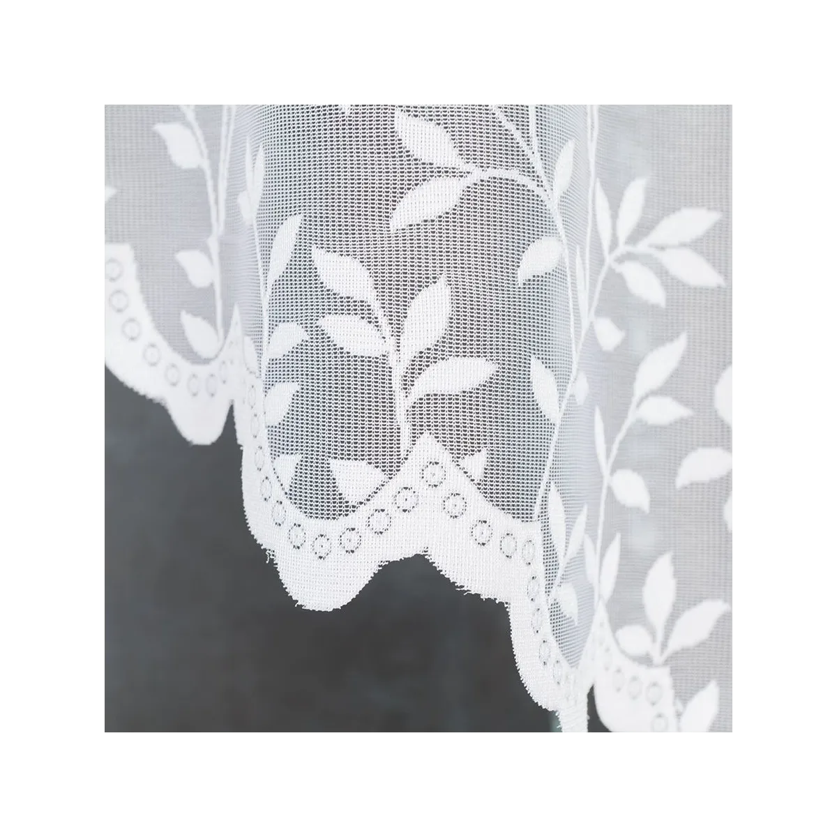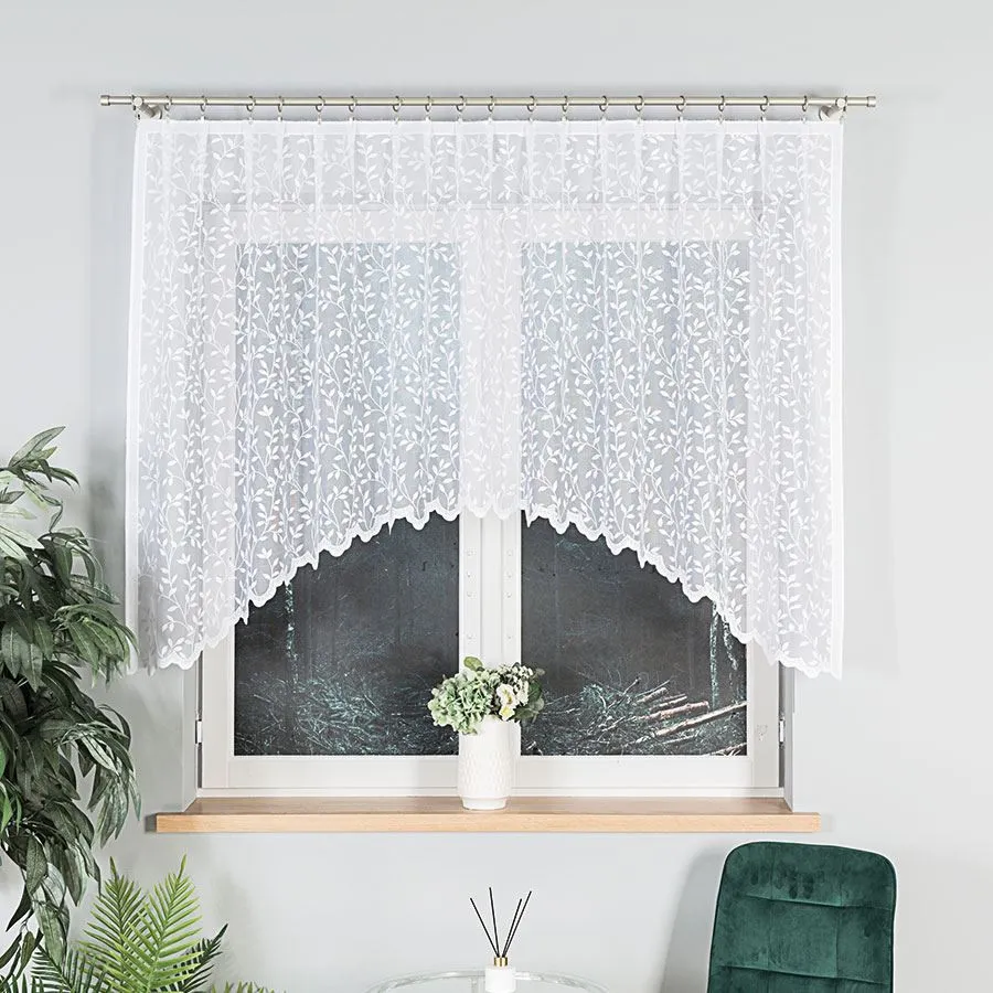 Dzięki wymiarom 250x130 cm firanka dobrze prezentuje się w kuchni, jadalni, salonie czy pokoju dziennym, szczególnie tam, gdzie liczy się lekkość i jasne tło dla aranżacji. Klasyczny styl oraz roślinny motyw świetnie komponują się zarówno z tradycyjnymi, jak i bardziej nowoczesnymi wnętrzami.