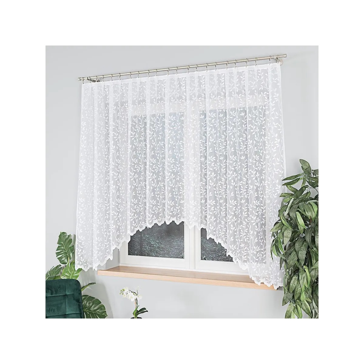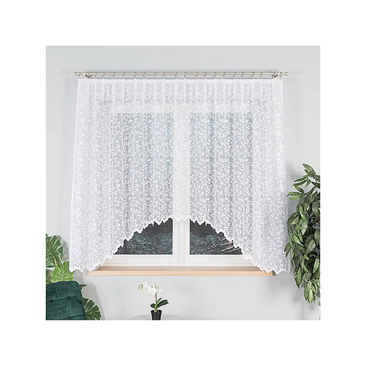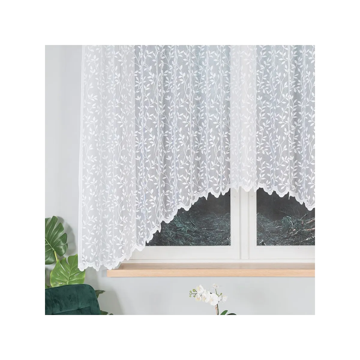 Firanka gotowa żakardowa ZUZANNA marki Markizeta to klasyczna propozycja do wnętrz, w których liczy się lekkość i ponadczasowa elegancja. Biały kolor oraz delikatny wzór liści pięknie rozpraszają światło, tworząc przytulną, jasną oprawę okna.