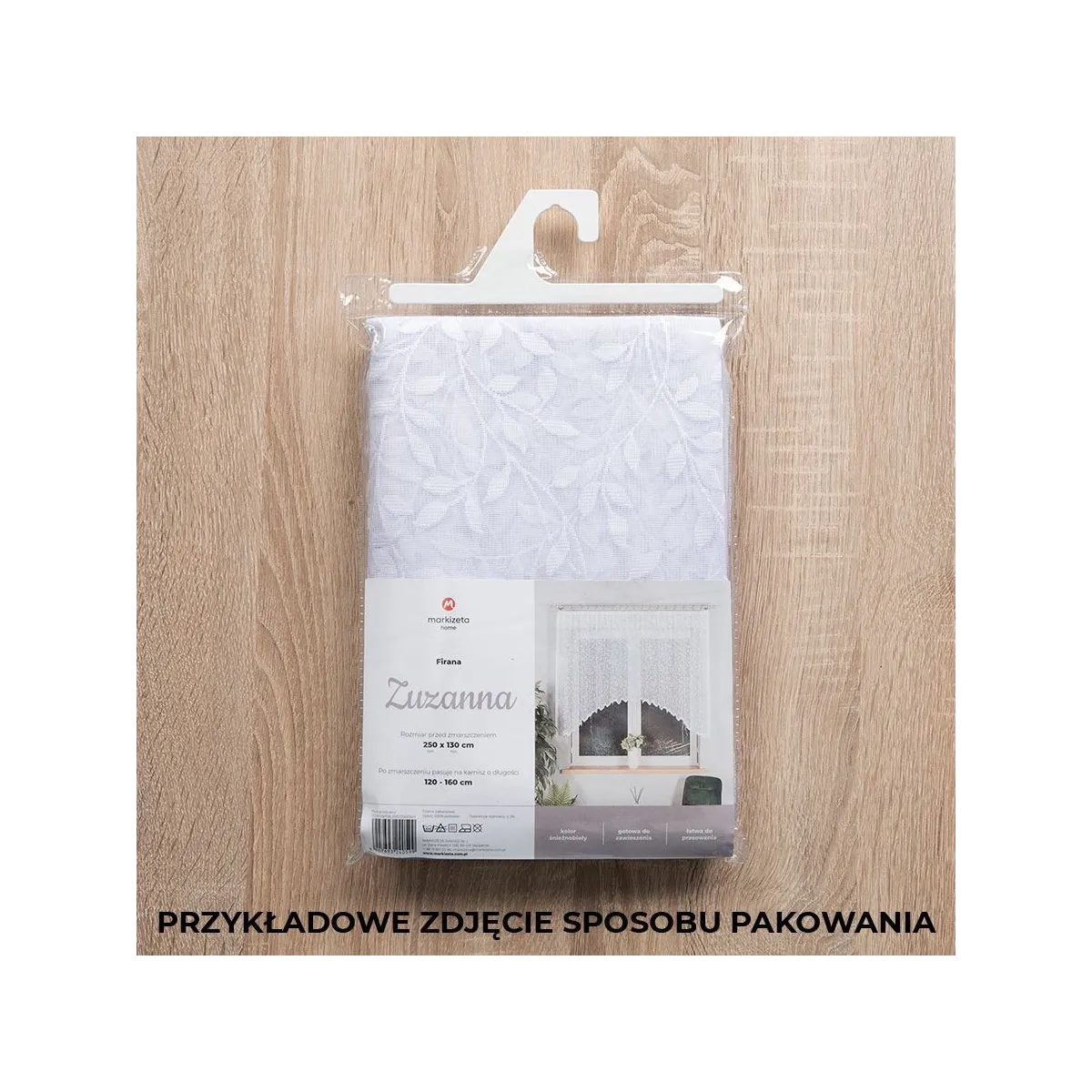 - Fabryczne wykończenie boków – firanka jest gotowa do zawieszenia i nie wymaga obszycia.