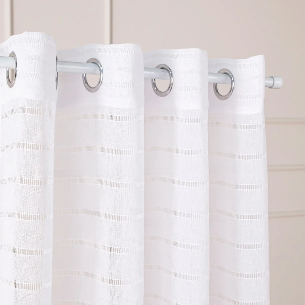 Dzięki wykończeniu na przelotkach, firankę zawiesisz w mgnieniu oka – bez fałdowania, marszczenia czy specjalnych taśm. Równe fale układają się naturalnie i efektownie, podkreślając nowoczesny styl aranżacji. 🪟