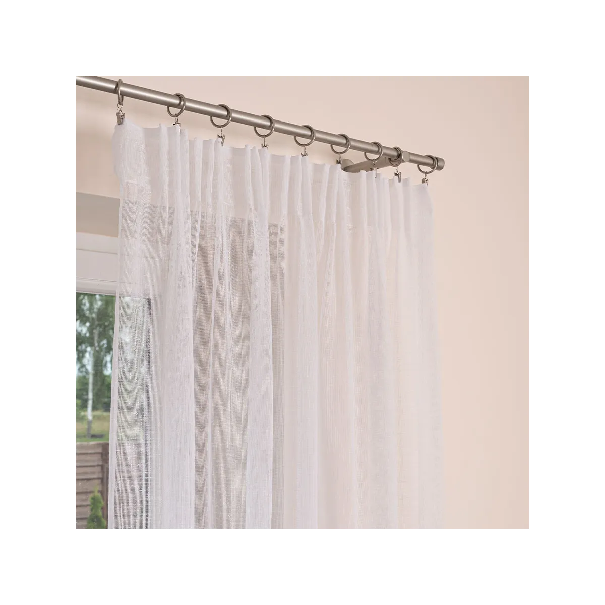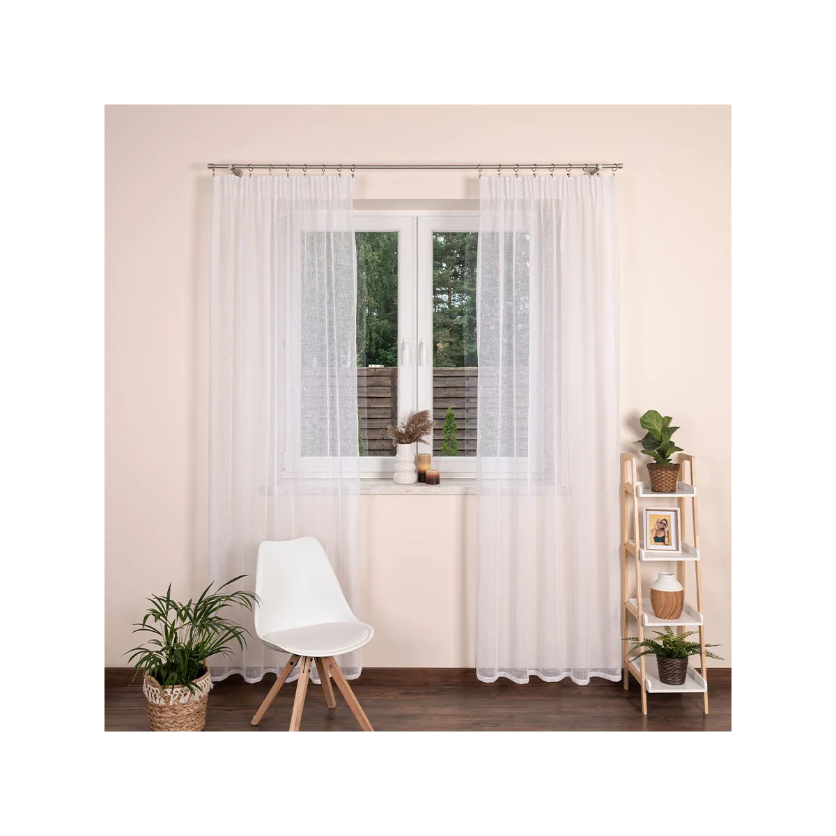 - 👌 Błyskawiczny montaż – taśma marszcząca pozwala na szybkie i estetyczne powieszenie firanki na karniszu lub żabkach, bez konieczności szycia.