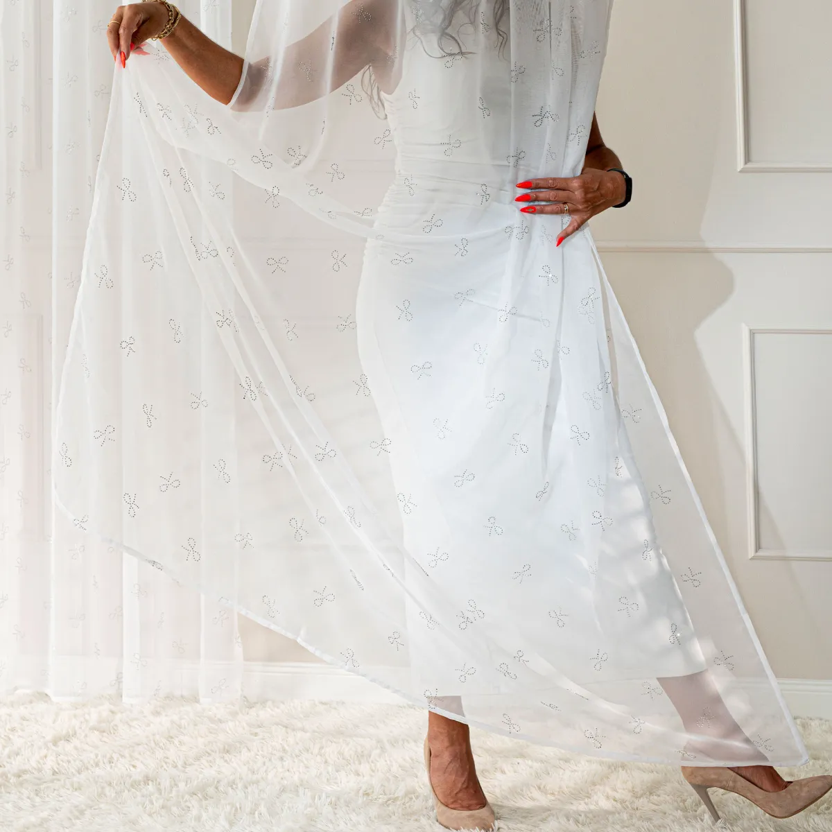 Firanka gotowa RIBBON z taśmą marszczącą, 140x250 cm, biała ze srebrnym wzorem – delikatna, transparentna tkanina zdobiona subtelnymi srebrzystymi detalami. Idealna do dekoracji salonu, sypialni i jadalni, dodaje wnętrzu lekkości, elegancji oraz blasku. Szybki montaż i wygodna pielęgnacja.